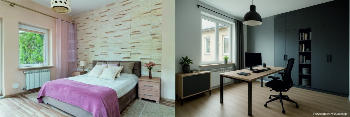 - Pokój (dawny garaż, 22,5 m² ) - możliwość przywrócenia funkcji garażu lub adaptacji na osobny lokal usługowy z niezależnym wejściem