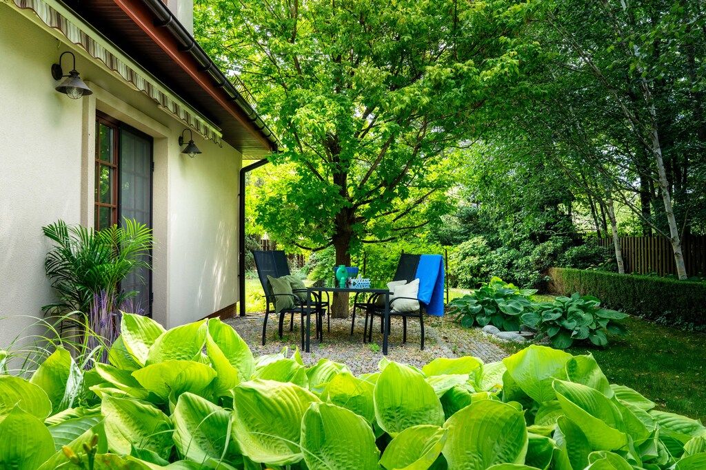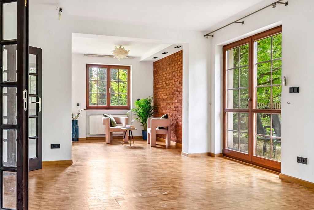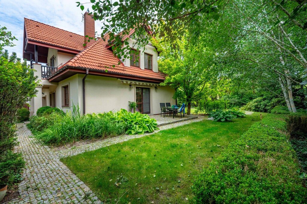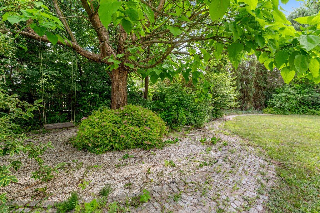 Pięknie zagospodarowany ogród to zdecydowanie największy atut tej nieruchomości. Najmłodszym mieszkańcom z pewnością przypadnie do gustu domek na drzewie schowany wśród bujnej roślinności.