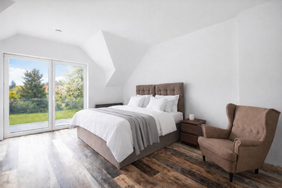 • przestronny salon z aneksem kuchennym i wyjściem na ogród,