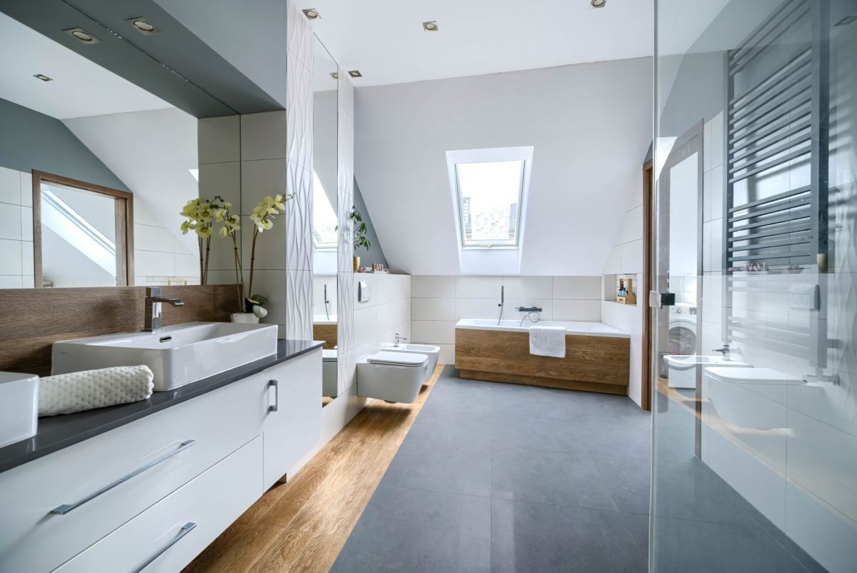 • Garaż na dwa samochody w bryle budynku z automatyczną bramą
