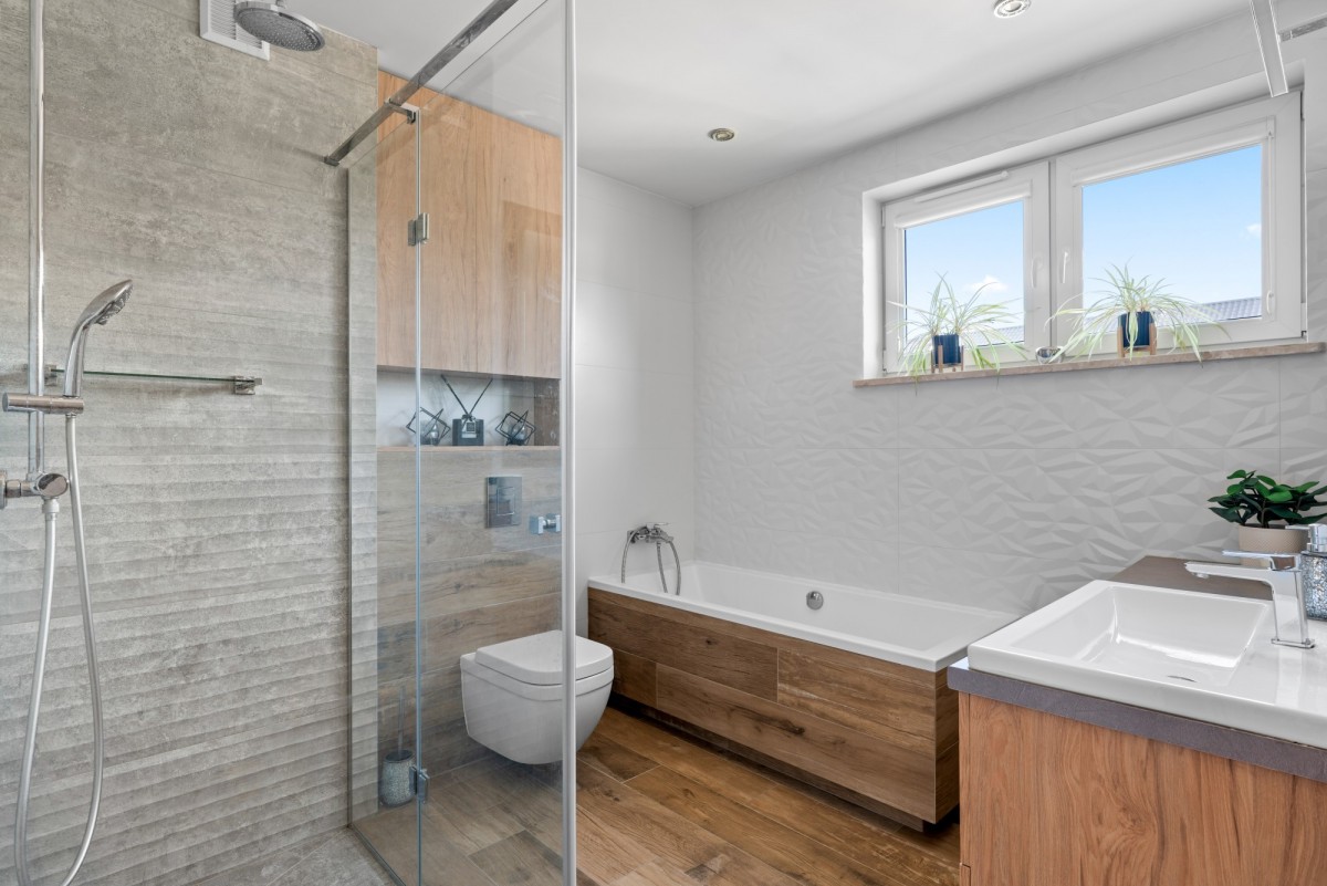 Łazienka z wanną i prysznicem