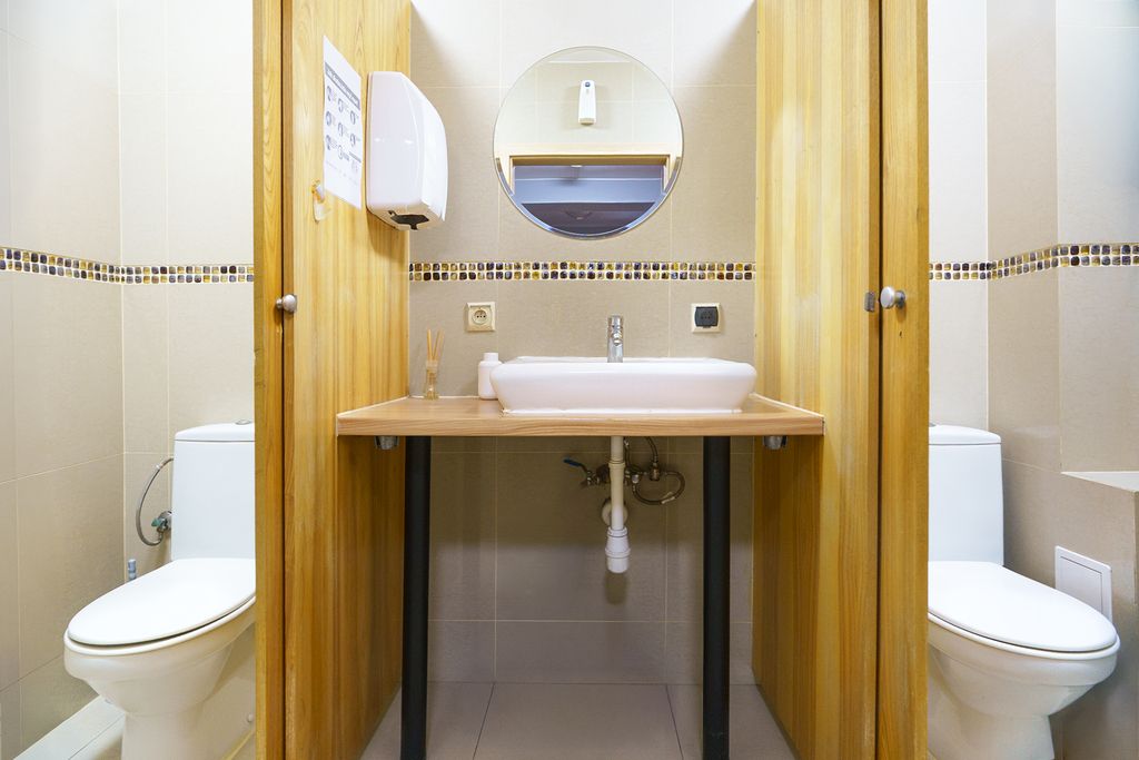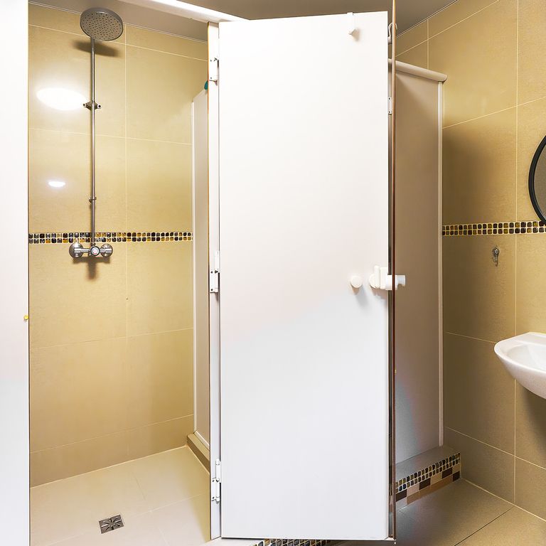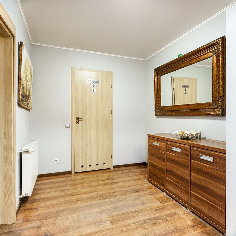 • część pokoi z prywatnymi łazienkami, pozostałe z dostępem do nowoczesnych sanitariatów i pryszniców wielokabinowych