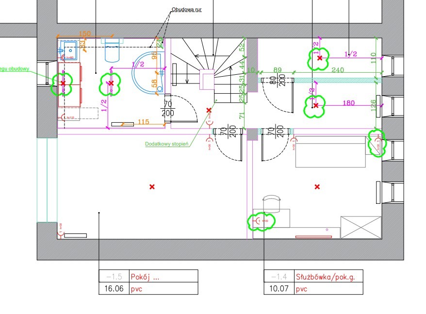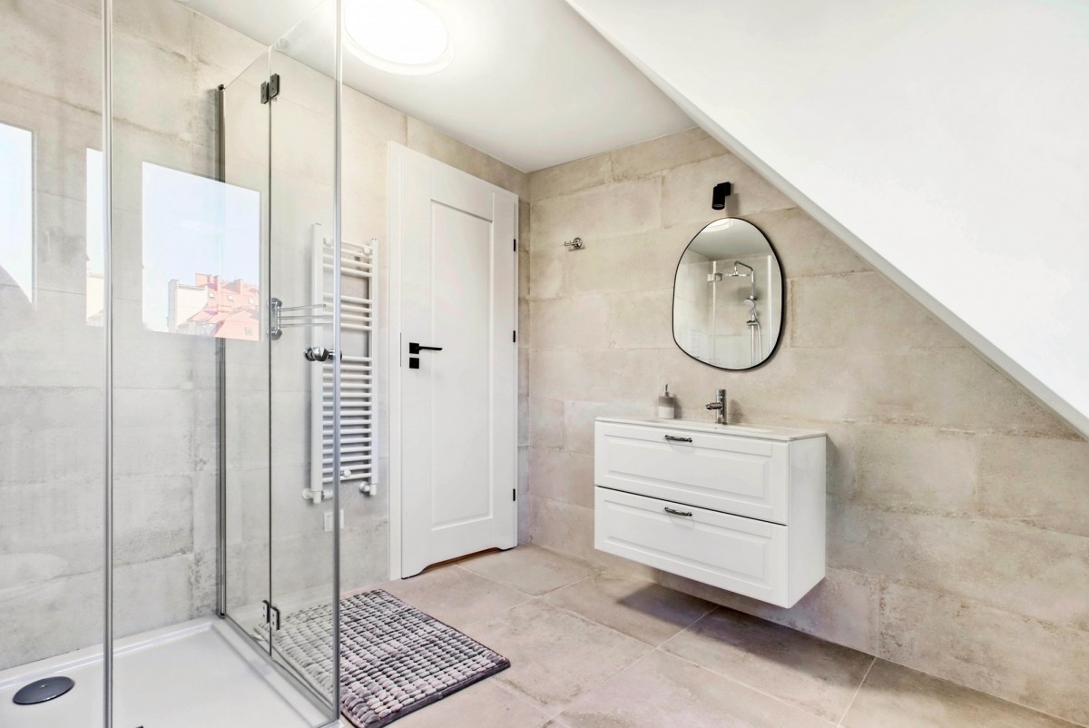 Kondygnacja 3 to 2 niemeblowane pokoje oraz łazienka z kabiną prysznicową.