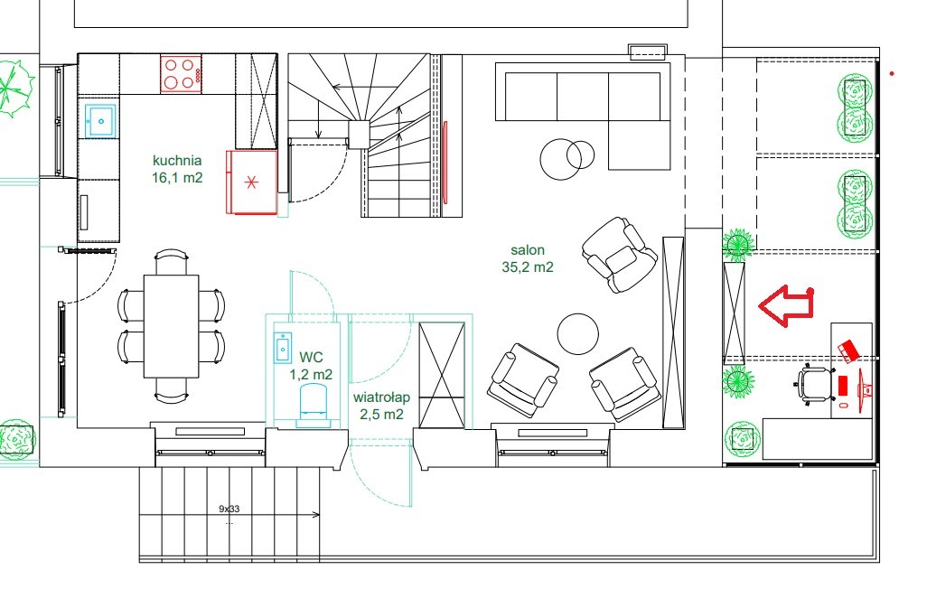 Na kondygnacji 1 mieści się salon, jadania z aneksem kuchennym, toaleta, przedpokój, nowy ogród zimowy oraz taras, z którego możemy wyjść na zadbany ogródek.