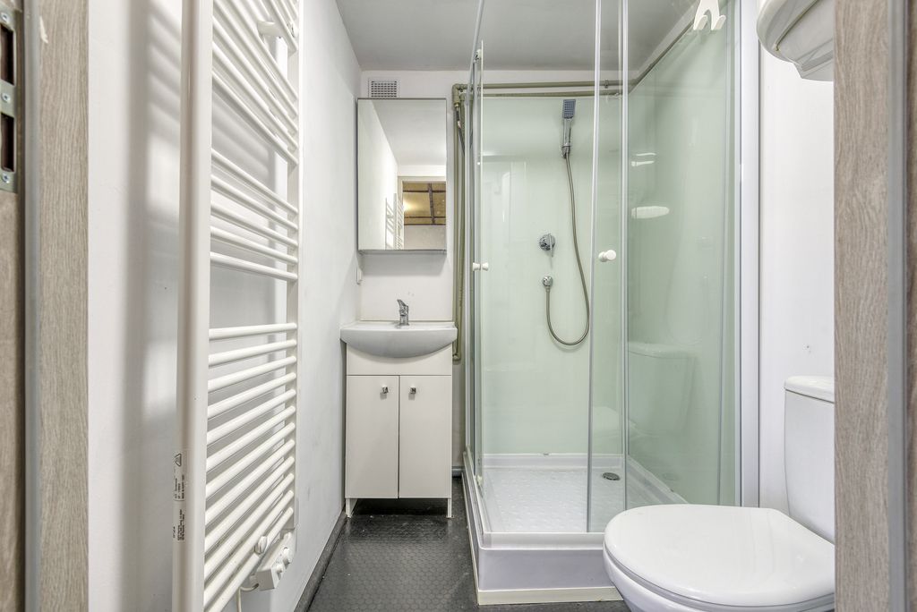 - łazienka wyposażona w umywalkę, WC oraz prysznic