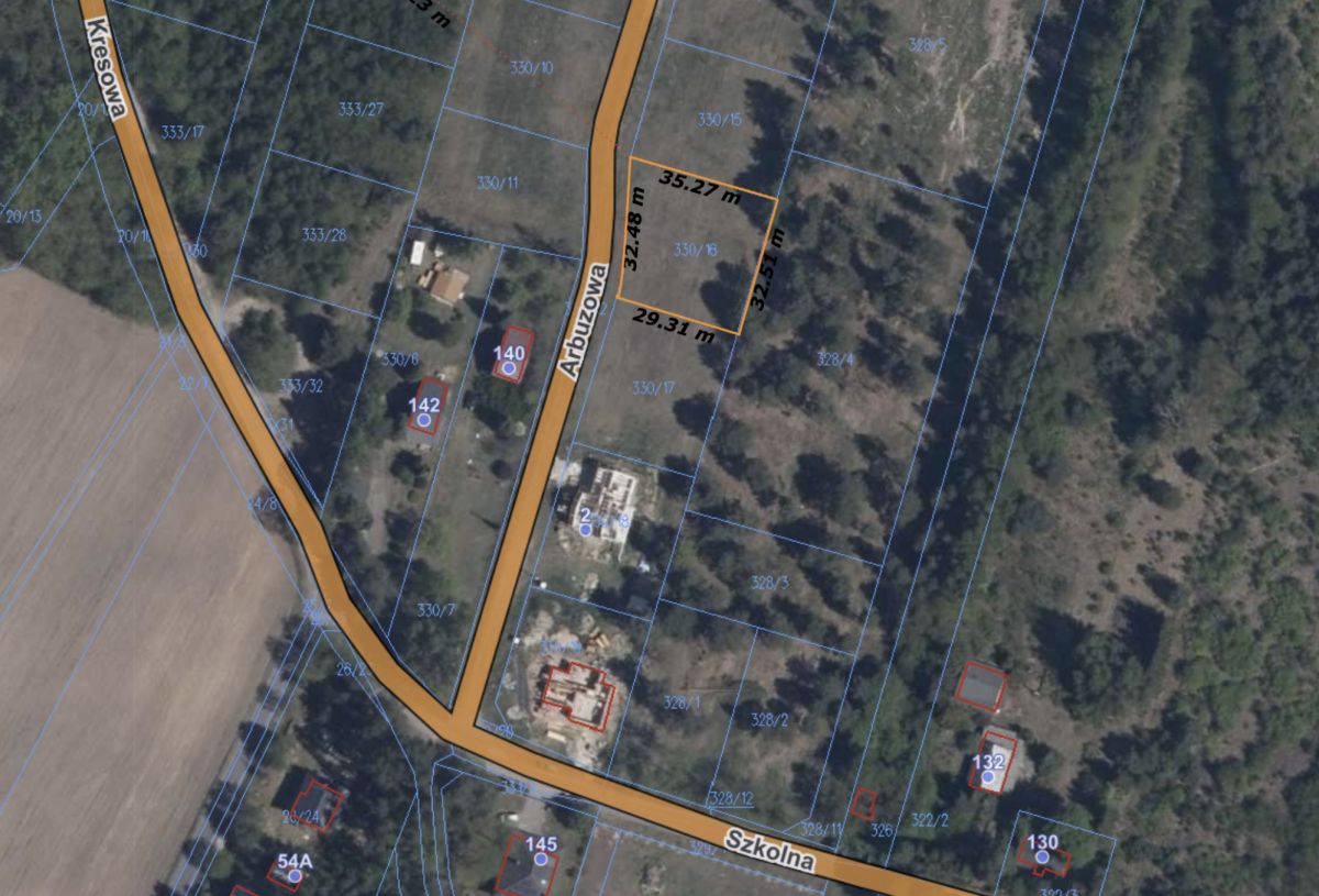 Nr ewidencyjny działki 330/16. Adres: ul. Arbuzowa 6. Na wysokości adresu ul. Szkolna 140. Blisko miejscowości Wężyk. Wszystkie dokumenty do wglądu.