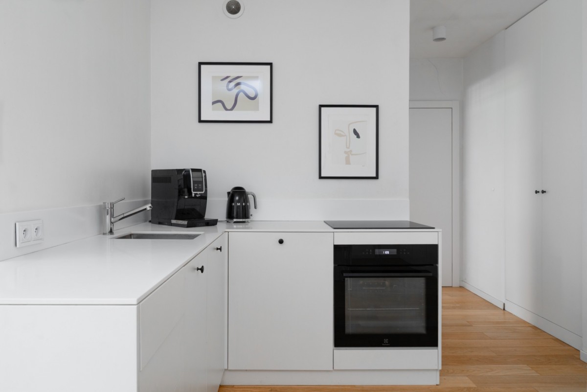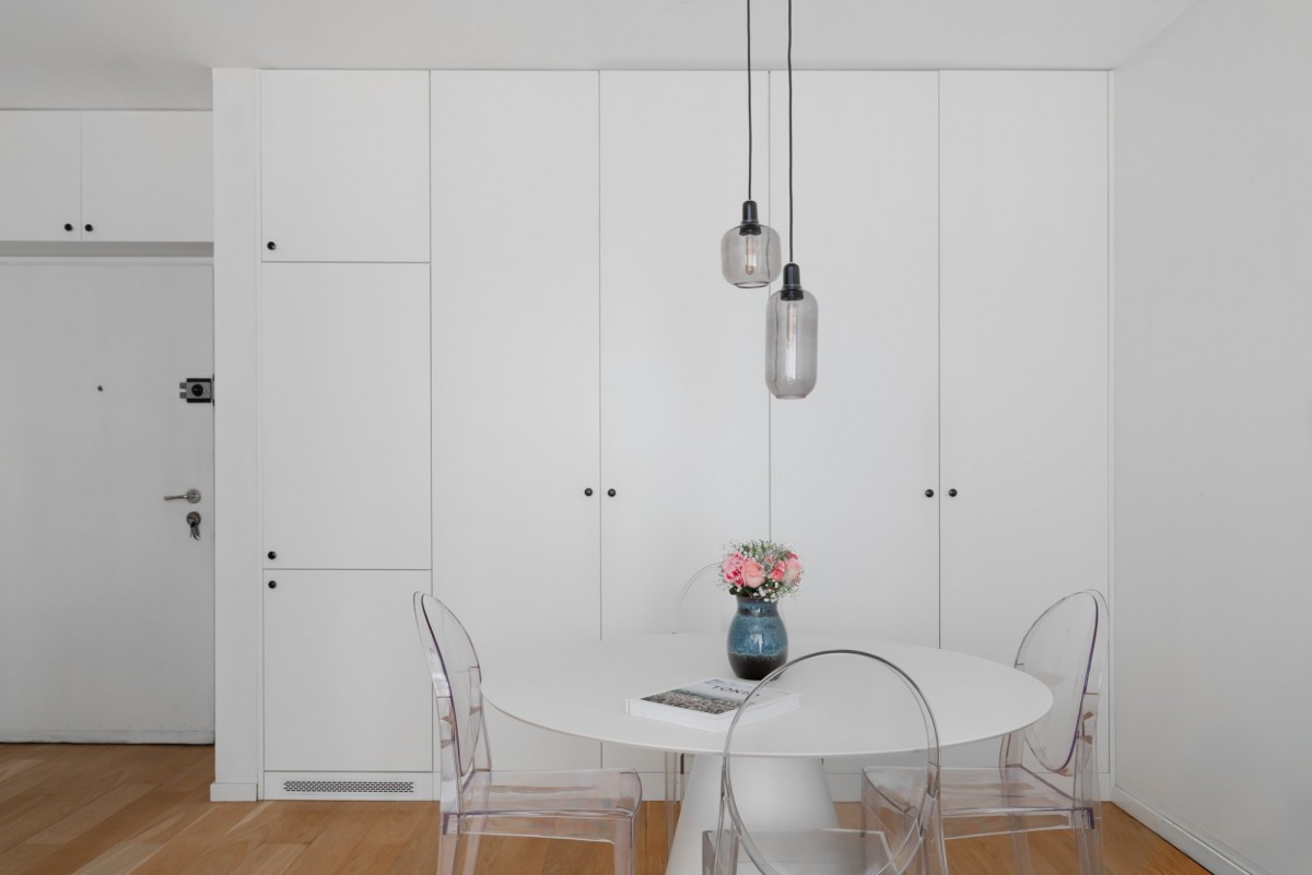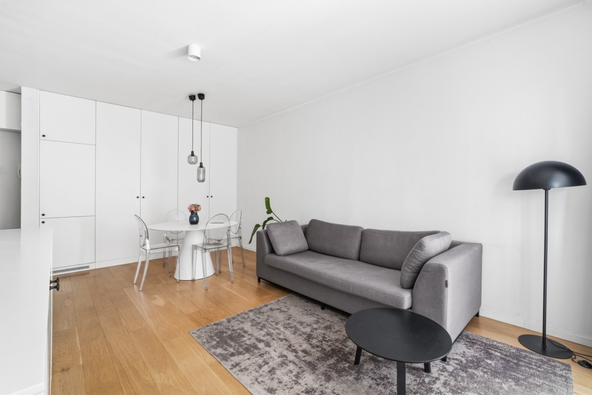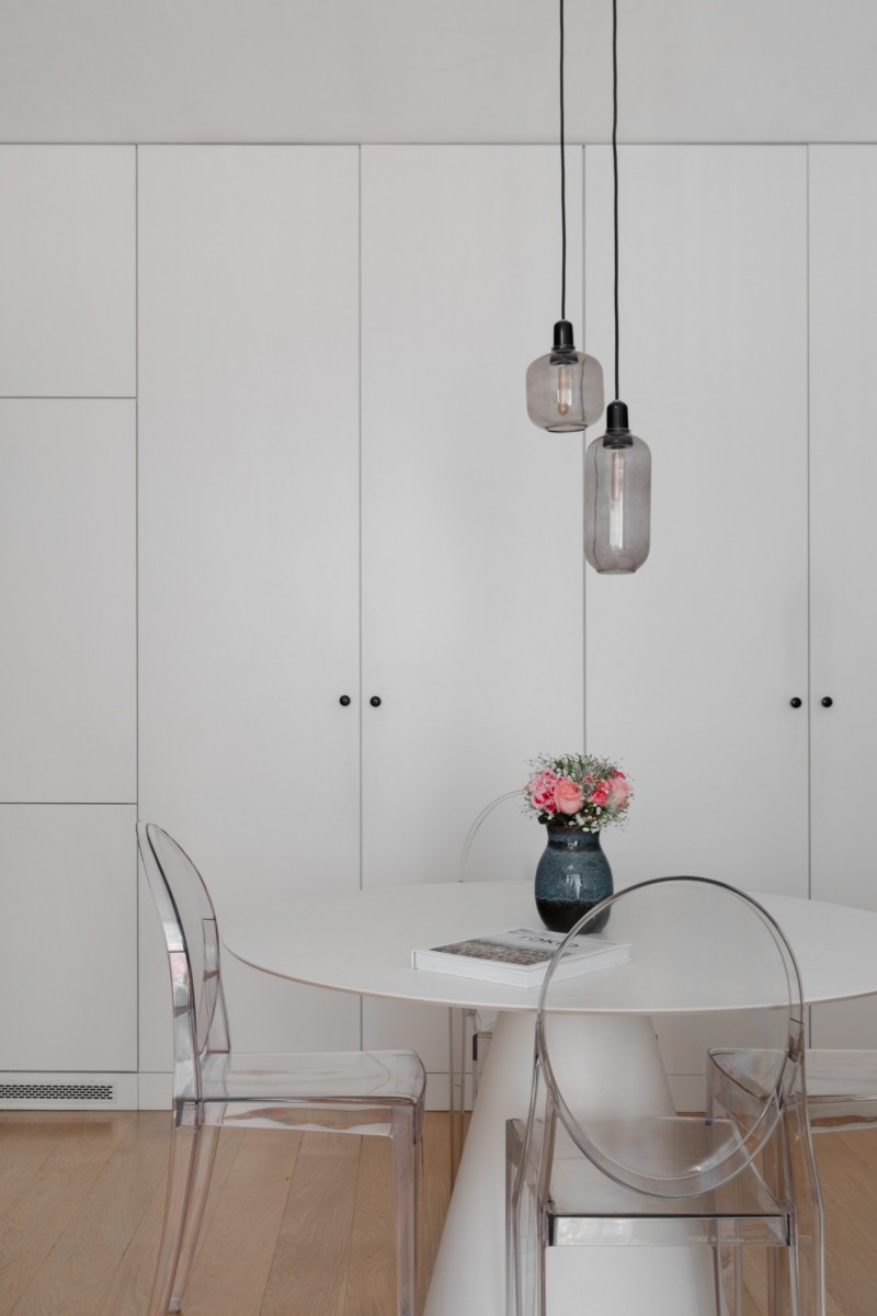 Generalny remont mieszkania został przeprowadzony w latach 2020/2021 według projektu pracowni 3XL Architekci. Wnętrza wykończono wysokiej jakości materiałami oraz wyposażono w starannie dobrane meble i oświetlenie renomowanych marek, takich jak Custform, Pedrali, Normann Copenhagen czy Ghost projektu Philipa Starcka. Całość dopełnia dębowa podłoga, nadająca przestrzeni ciepło i elegancję.