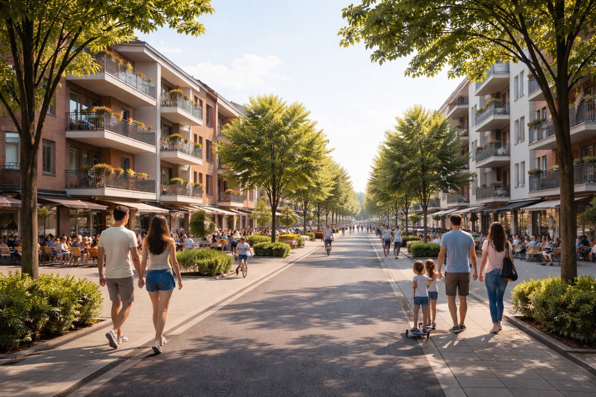 ? wiele stref wspólnych dostępnych dla mieszkańców, sprzyjających integracji i wypoczynkowi