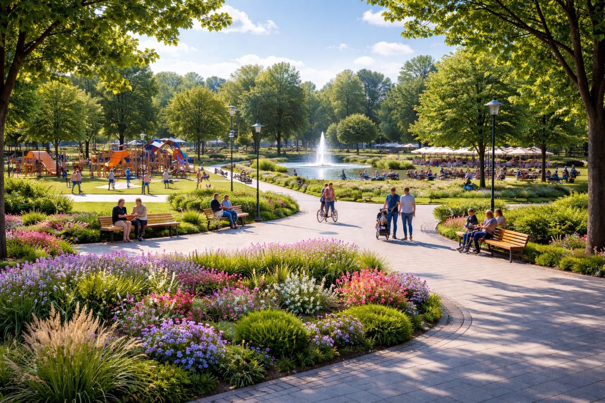 ? wiele stref wspólnych dostępnych dla mieszkańców, sprzyjających integracji i wypoczynkowi