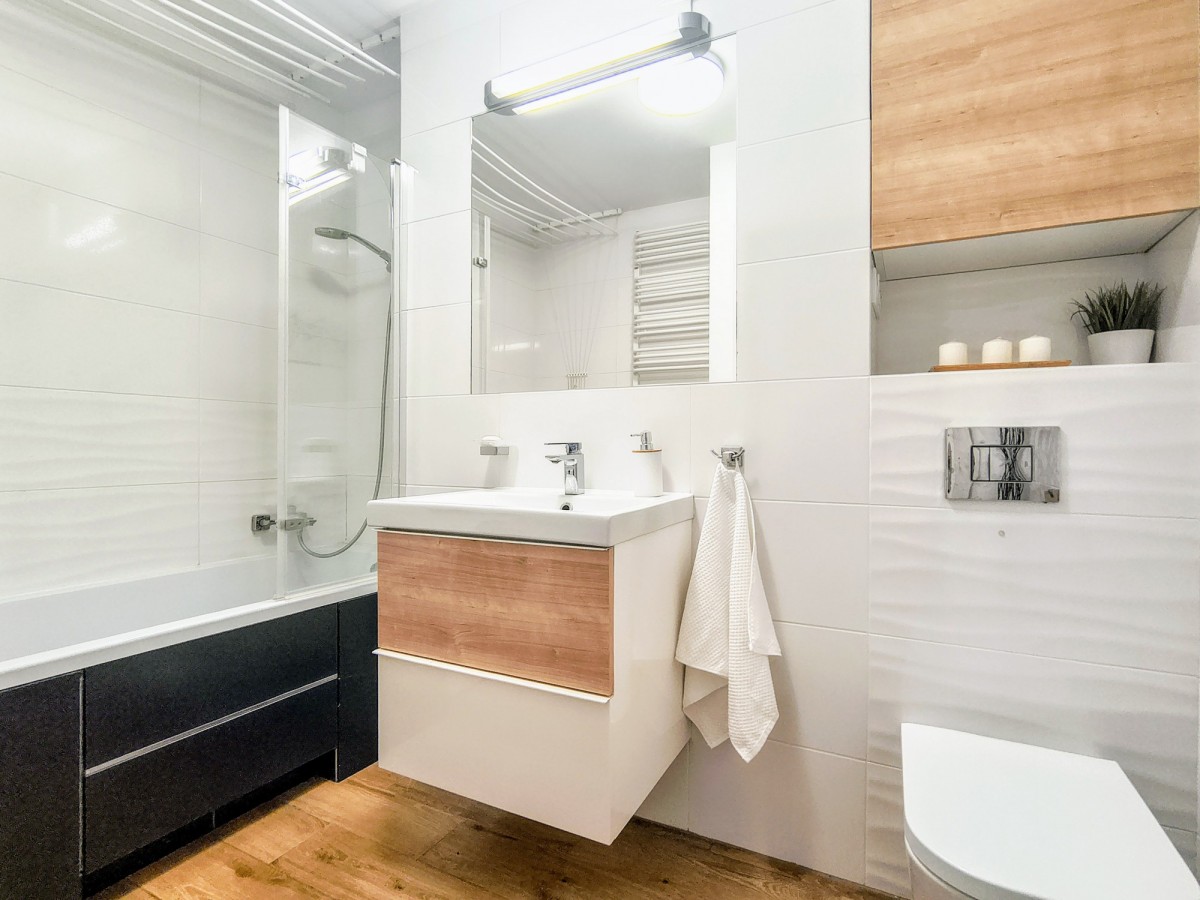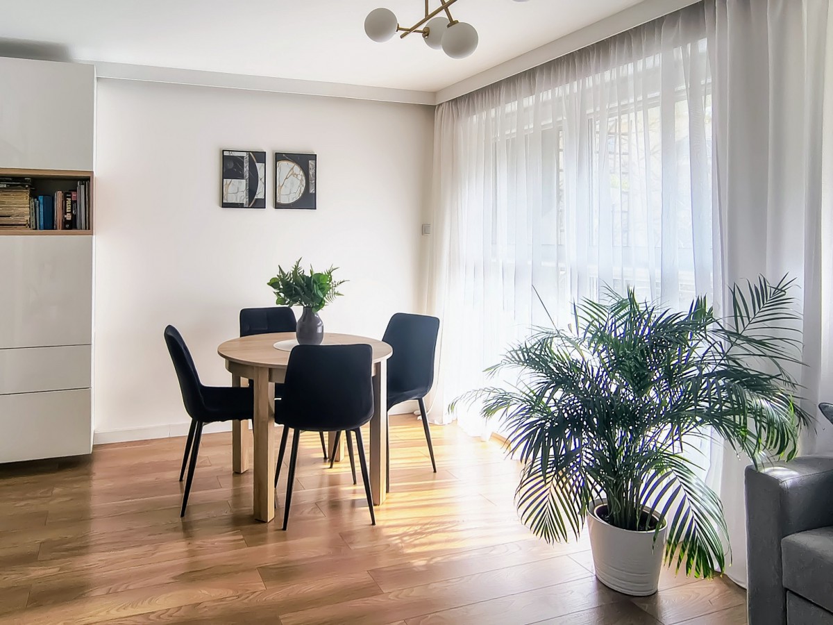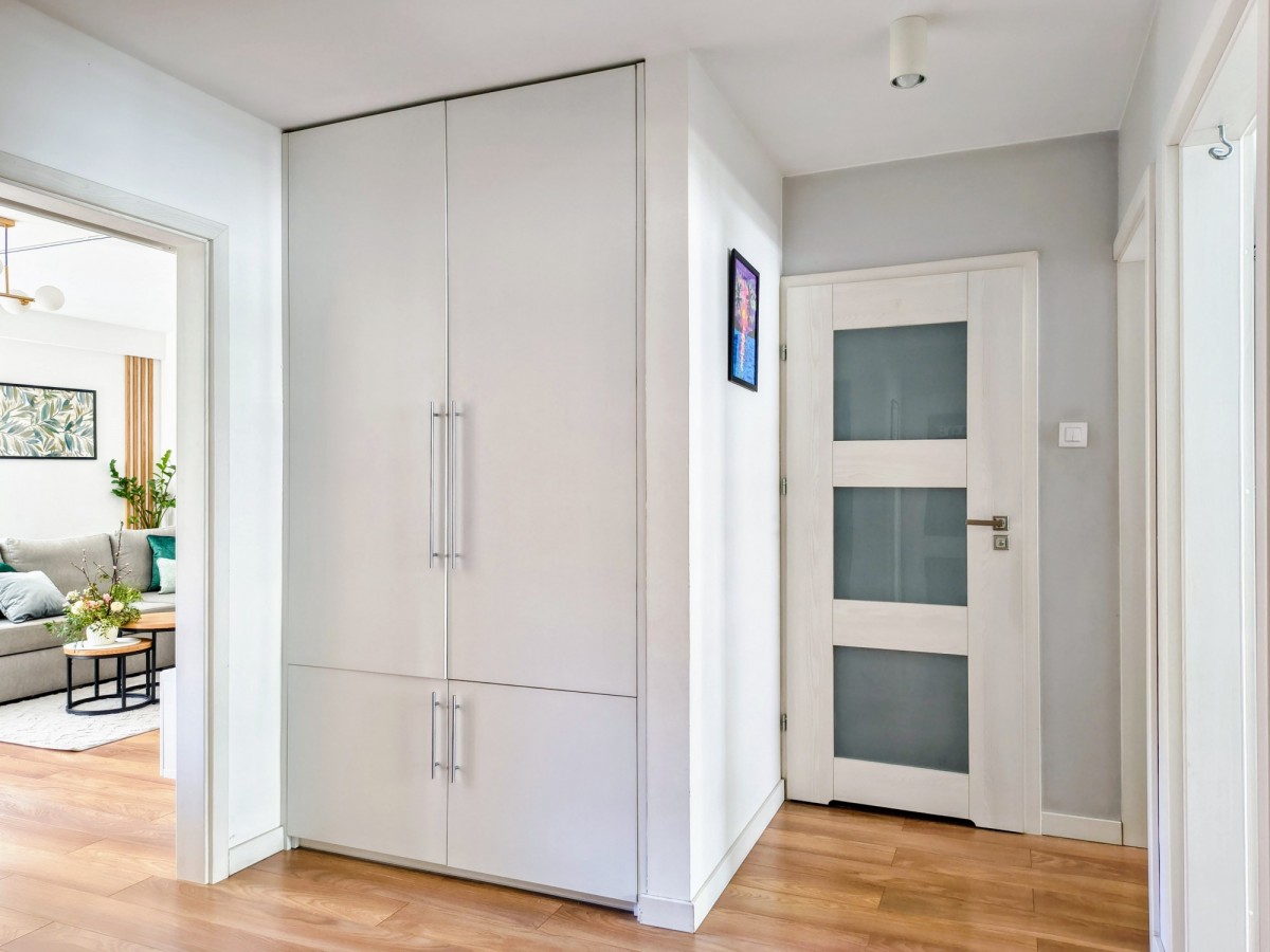 Wnętrze mieszkania zostało zaprojektowane z myślą o funkcjonalności. Przestronny salon z wyjściem na zaciszny balkon 4,28m2 to idealne miejsce na odpoczynek. Dwie ustawne sypialnie (10,2m2 oraz 9m2) dają wiele możliwości aranżacyjnych - zarówno dla rodziny, jak i osób pracujących zdalnie. Oddzielna, wygodna kuchnia (9,5m2) pozwala na komfortowe przygotowywanie posiłków. Obok kuchni znajduje się pomieszczenie gospodarcze, które może zostać zagospodarowane na dodatkowe WC bądź pralnie. Całość utrzymana jest w bardzo dobrym standardzie, dzięki czemu mieszkanie nie wymaga żadnych dodatkowych nakładów finansowych.