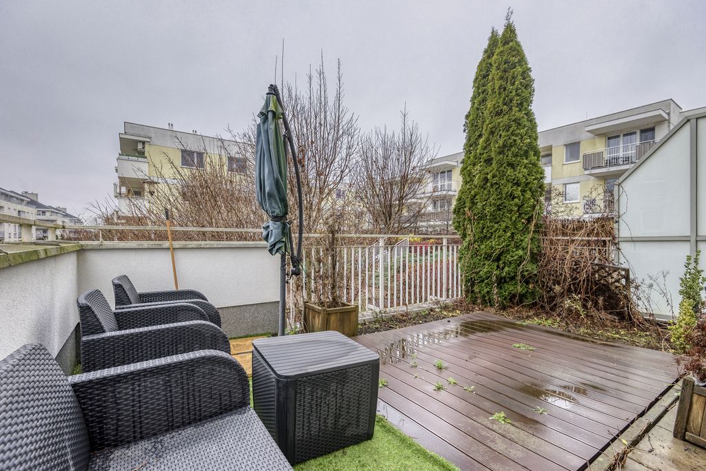 Największym atutem nieruchomości jest prywatna strefa wypoczynkowa na świeżym powietrzu: