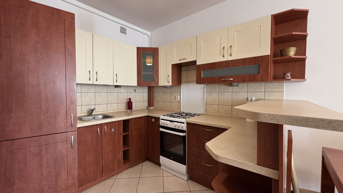 Serce mieszkania stanowi przestronny salon z aneksem kuchennym o powierzchni 26 m². To jasna, otwarta przestrzeń, idealna zarówno do wypoczynku, jak i spotkań z rodziną czy przyjaciółmi. Z salonu prowadzi wyjście na loggię (2,7 m²), skierowaną na wewnętrzną część osiedla, co gwarantuje ciszę i poczucie prywatności. Aneks kuchenny wykonany w pełnej zabudowie, wyposażony w sprzęt AGD, oferuje dużo miejsca do przechowywania i komfortową przestrzeń do gotowania.
