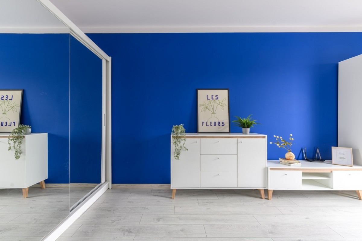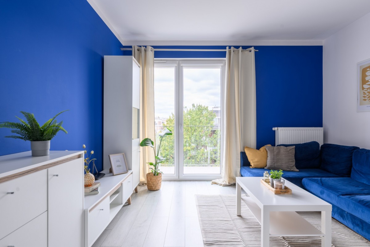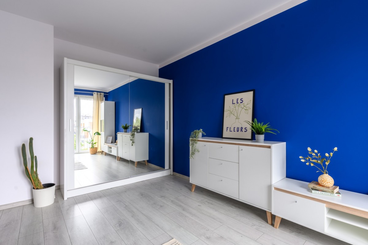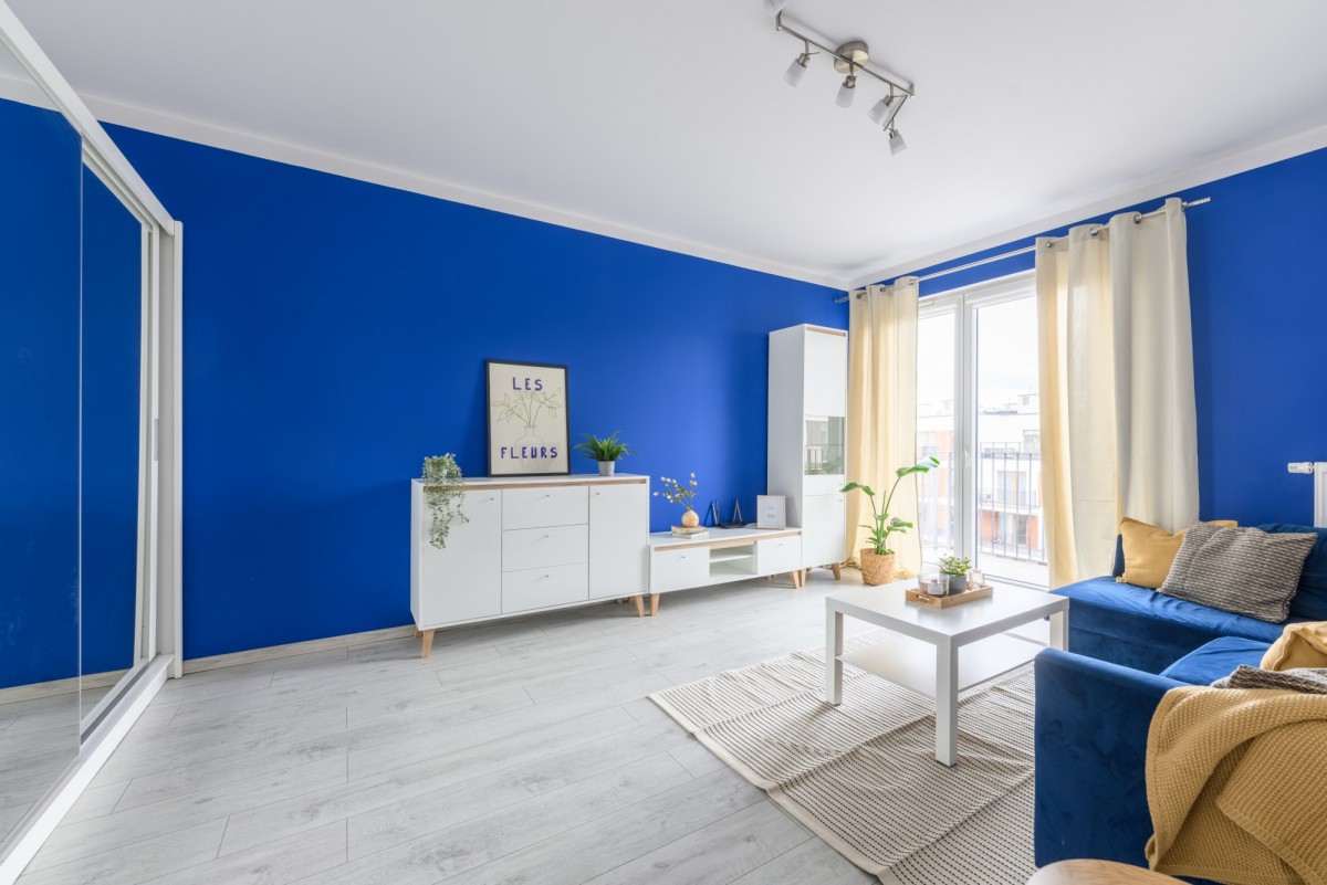 - Ściany wykończone gładzią gipsową, pomalowane w stonowanych barwach