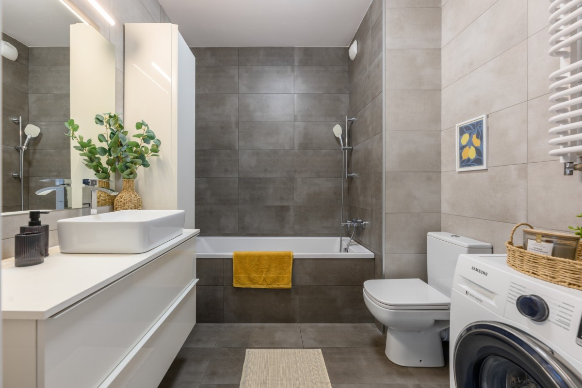 - Kuchnia: zabudowa na wymiar, pełne wyposażenie AGD — piekarnik, zmywarka, płyta indukcyjna, lodówka, okap