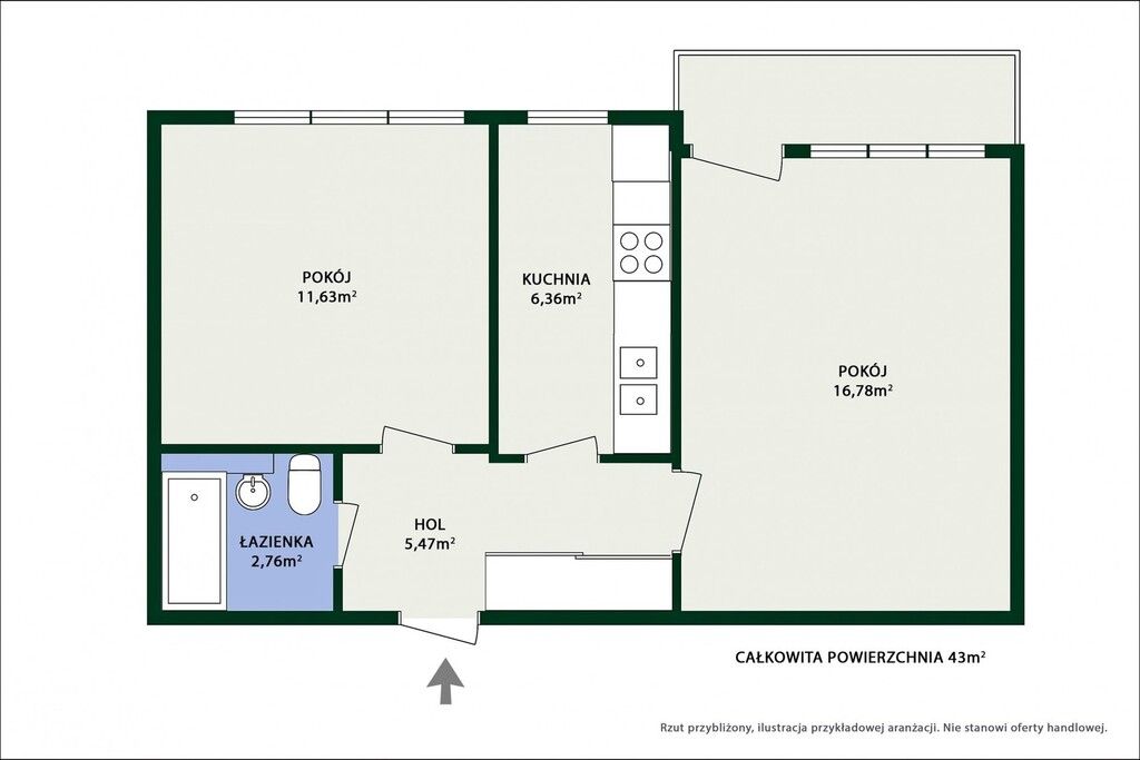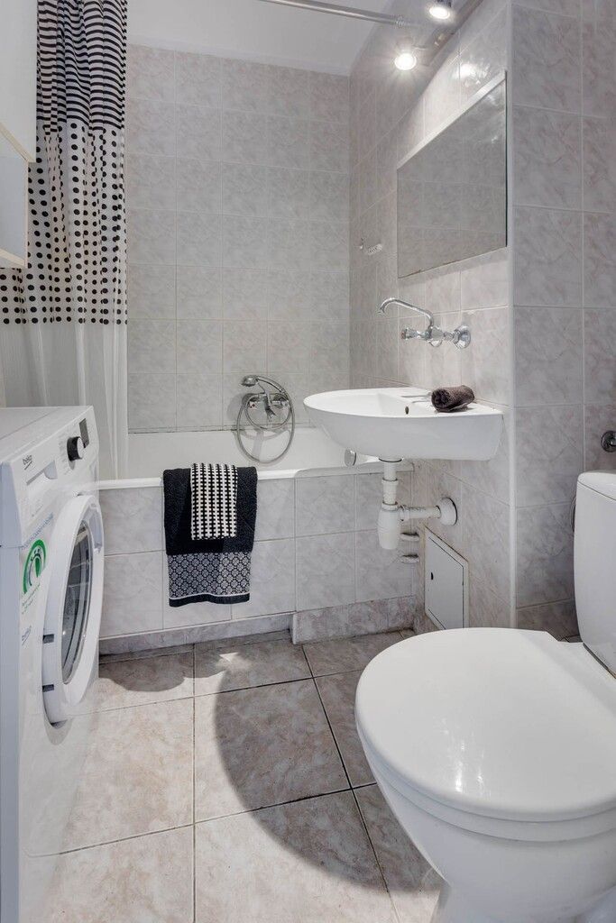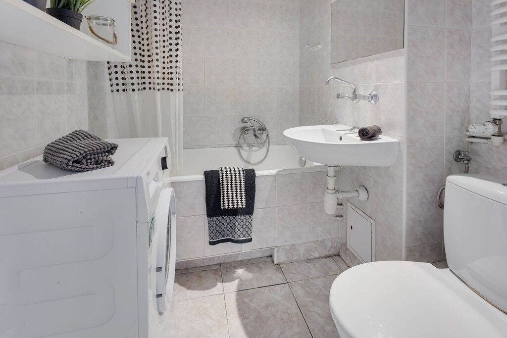 Łazienka razem z toaletą jest na tyle duża, że spokojnie zmieści się pralka. Plan mieszkania załączony razem ze zdjęciami.