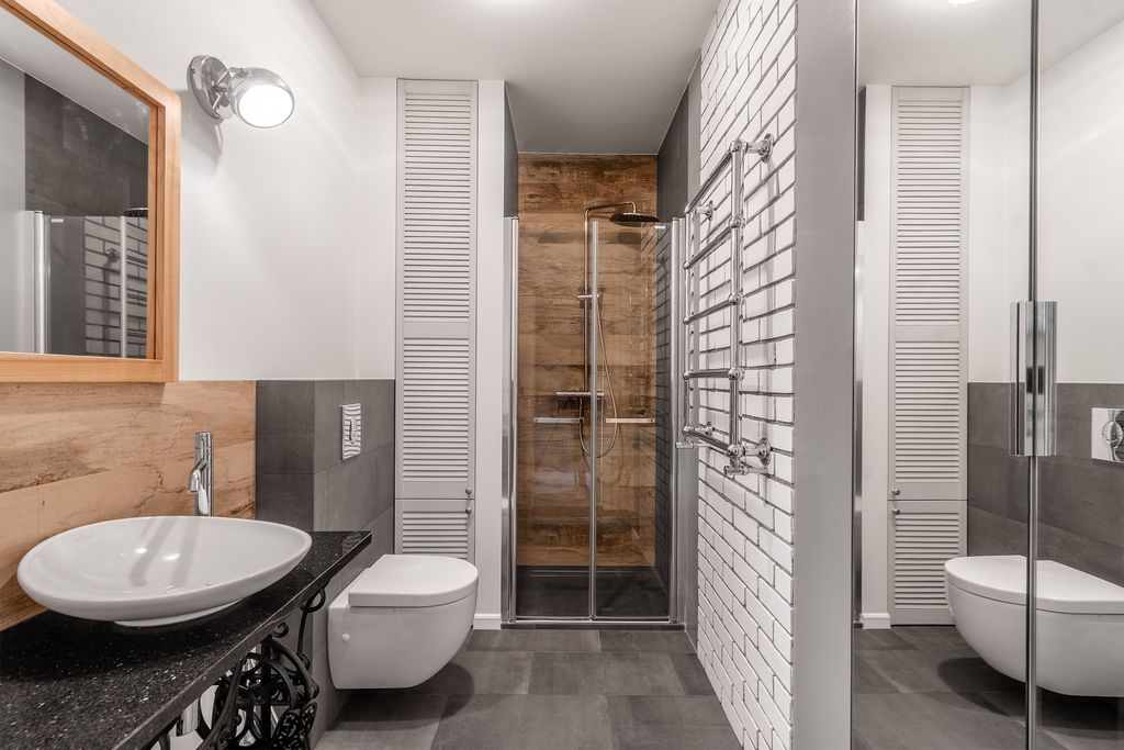 Common areas are thoughtfully finished – tiled floors, neutral wall colors, wooden details and modern lighting.