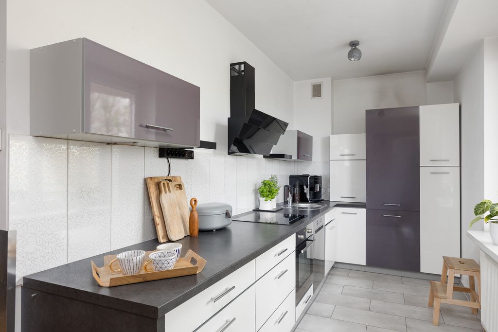 - widnej, otwartej kuchni (8 m²) w zabudowie, z dużym blatem roboczym i oknem,