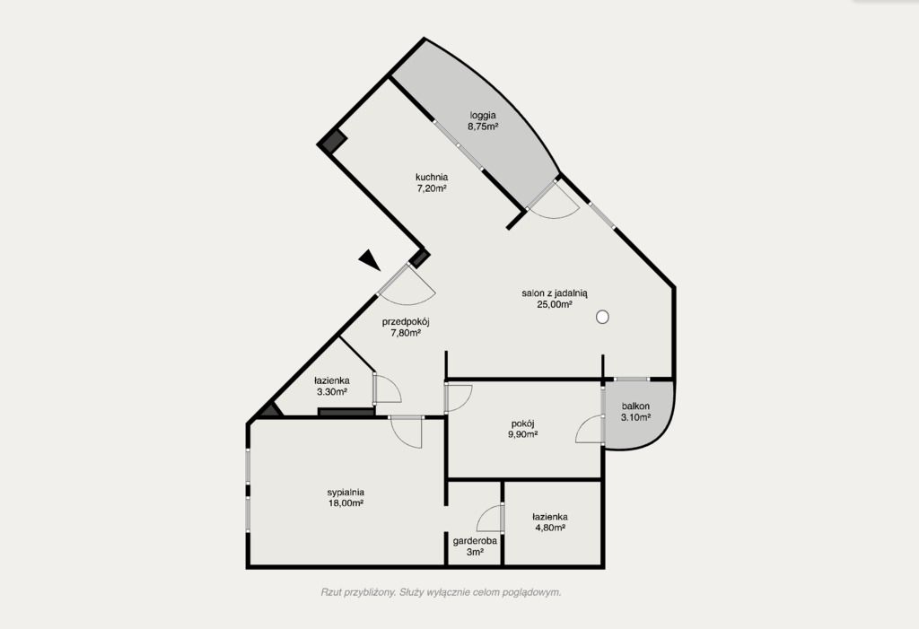 - przestronnego przedpokoju (8 m²) z miejscem na szafy i przechowywanie