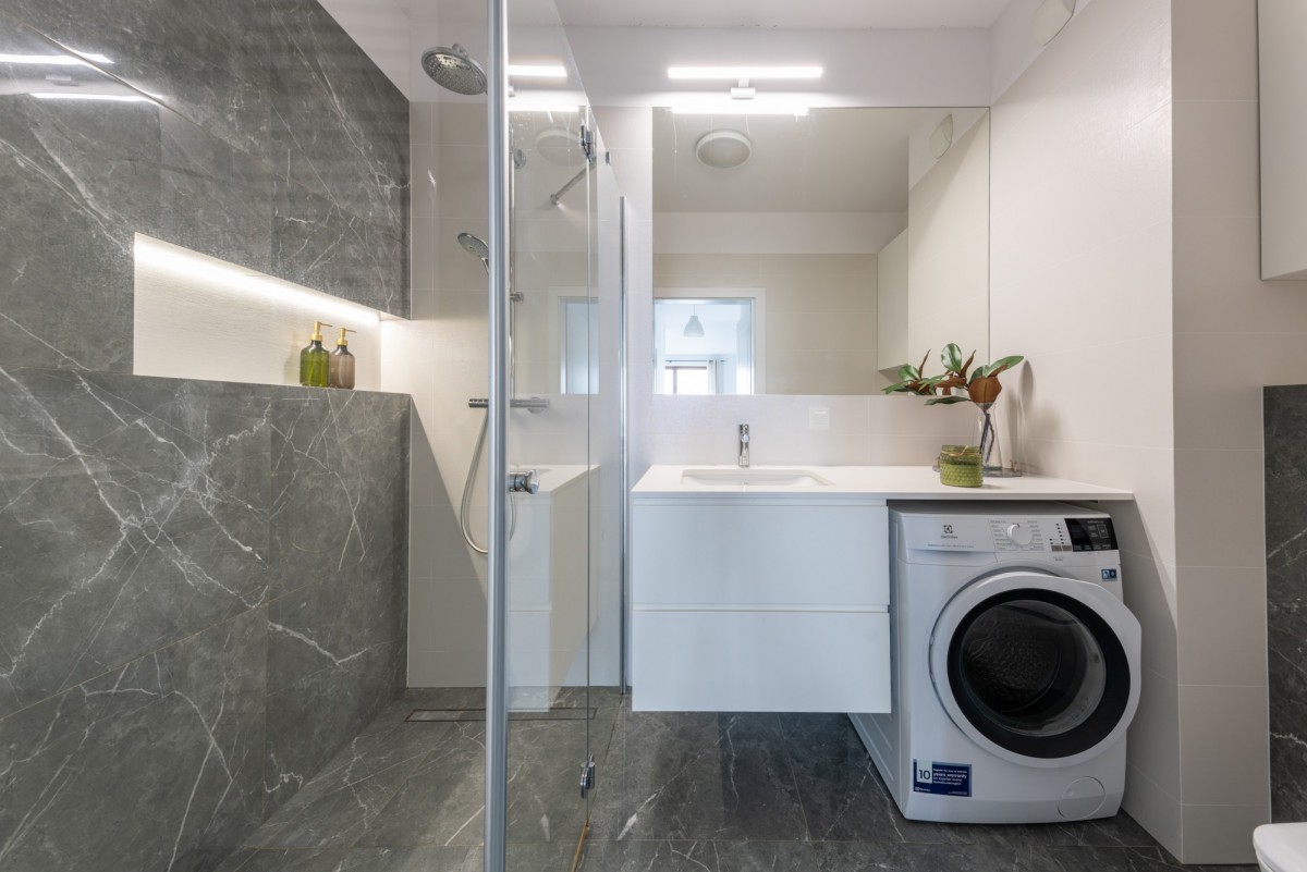 This 74 sqm apartment is situated on the 4th floor (out of 7) of a building completed in 2020, within a high-standard residential complex—an ideal base for comfortable living. Bright interiors are enhanced by large south- and west-facing windows, allowing for abundant natural light throughout the day. The central area features a living room with an open-plan kitchen, fitted with custom-made cabinetry and a full set of household appliances. The apartment also offers two well-proportioned bedrooms, a bathroom with a shower, an additional guest toilet, and a functional hallway.