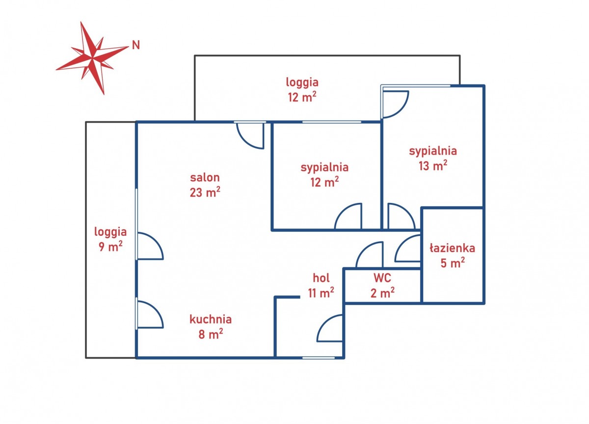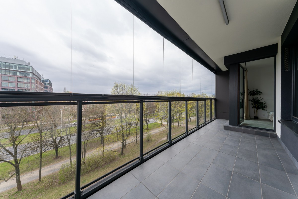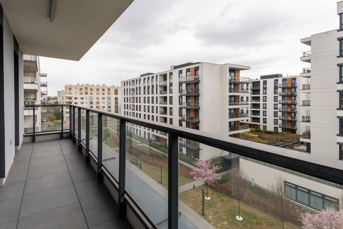 Dużym atutem nieruchomości są dwie przestronne loggie, stanowiące naturalne przedłużenie pomieszczeń. Większa loggia - z wejściem z salonu i jednej sypialni, skierowana jest na zachód i została wyposażona w przesuwne tafle szklane, dzięki którym można ją całkowicie zamknąć, zyskując dodatkową, wyciszoną przestrzeń do relaksu. Druga - z wejściem z salonu i kuchni, wychodzi na południe, tworząc idealne miejsce na poranną kawę. Do mieszkania przynależy komórka lokatorska (dodatkowo 25 000 PLN) oraz miejsce postojowe w garażu podziemnym (65 000 PLN).