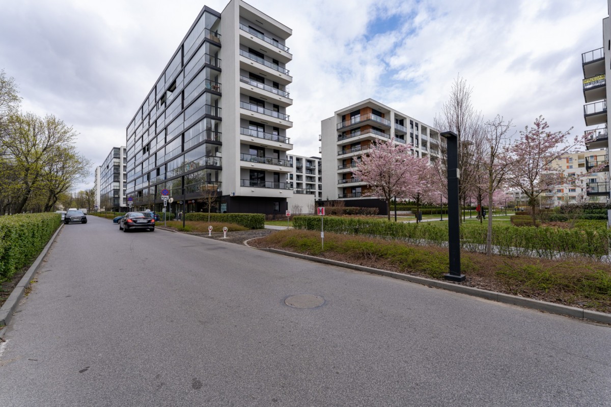 Mieszkanie znajduje się na wybudowanym przez Dom Development, zamkniętym, chronionym i monitorowanym osiedlu, które jest cenione za nowoczesną architekturę i estetykę. Okolica oferuje świetne zaplecze handlowo-usługowe, szkoły, żłobki i przedszkola, punkty medyczne, restauracje - w skrócie wszystko, co niezbędne dla komfortu życia. Sporym plusem jest także bliskość terenów zielonych, w tym Parku Wyględów (500 m) czy Pola Mokotowskiego (1,8 km).