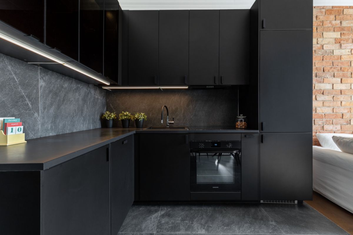 - salon z aneksem kuchennym (okna na ul. Grójecką)