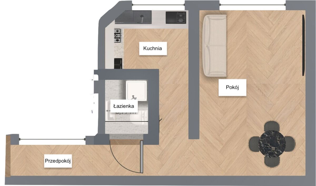 Osobna kuchnia - rzadko spotykana w tej wielkości mieszkaniach, zwiększa komfort codziennego życia.