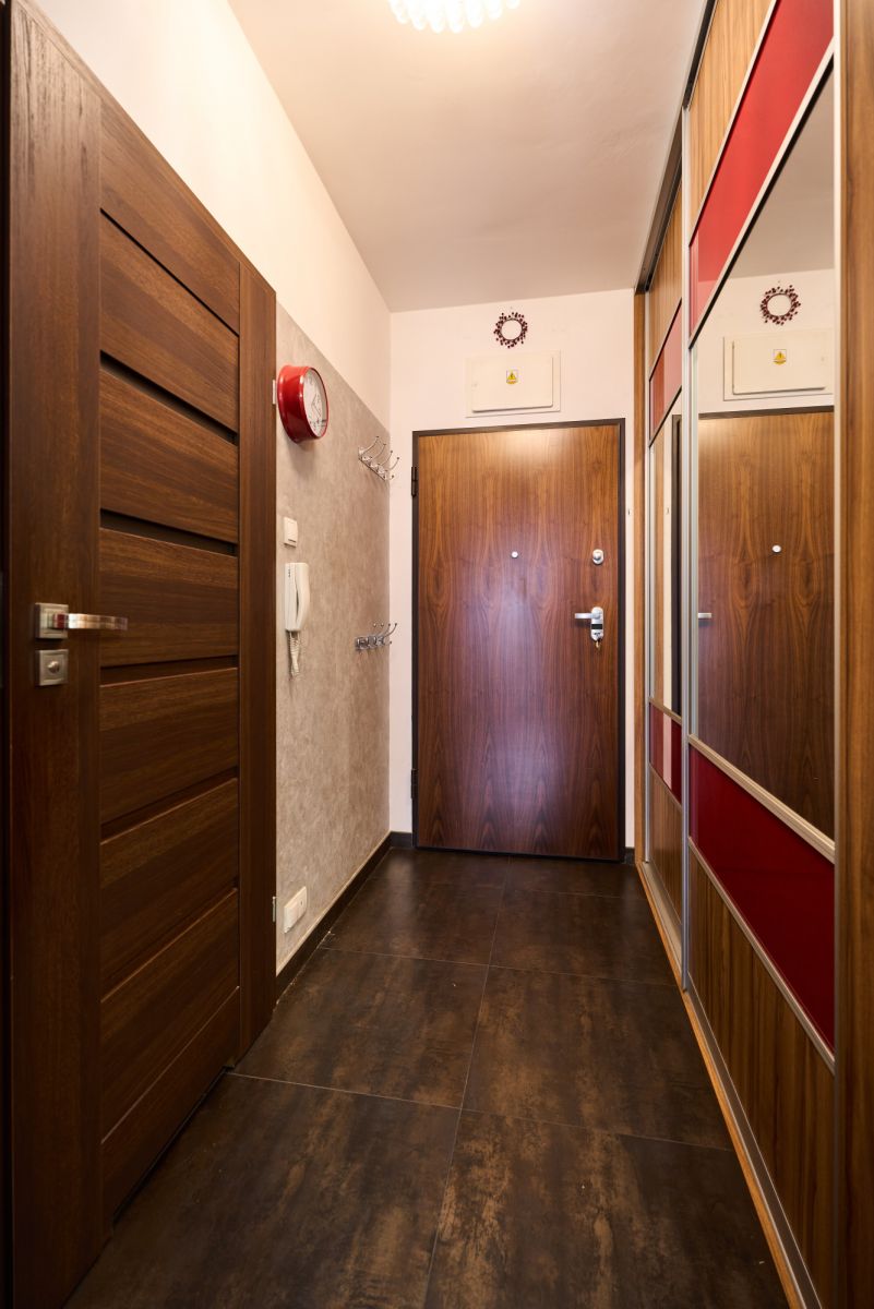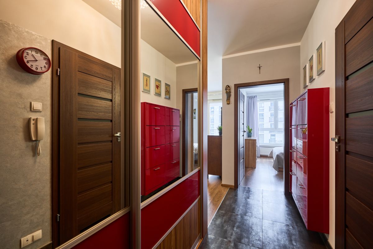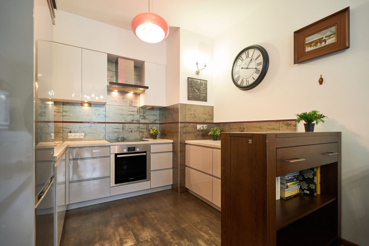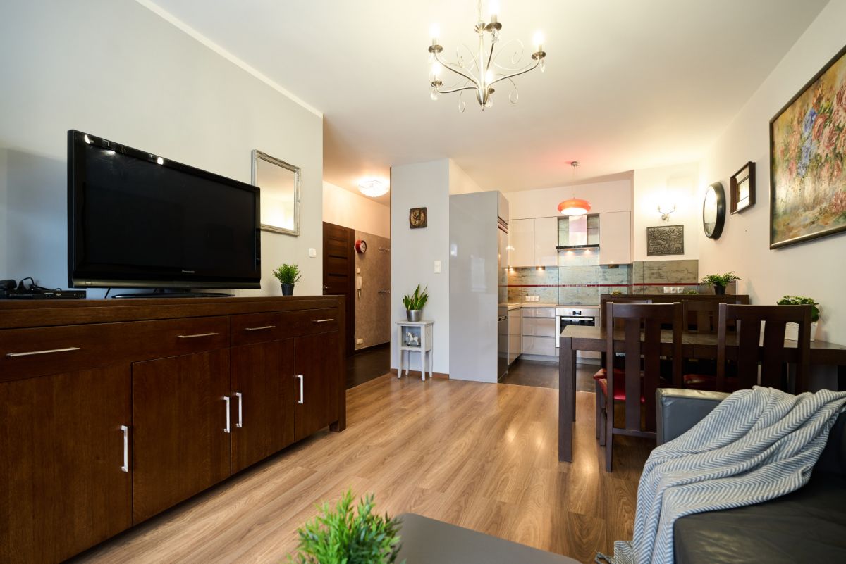 Lokal o powierzchni 48,5 m², składa się z 2 pokoi, tj. salonu z aneksem kuchennym, sypialni, przestronnej łazienki, przedpokoju oraz balkonu. W salonie oraz sypialni na podłodze położone są panele. Na wyposażeniu nieruchomości pozostaje pełne wyposażenie AGD (płyta indukcyjna, piekarnik, okap, zmywarka, lodówka, pralka). Zarówno w kuchni jak i w przedpokoju meble są wykonane na wymiar przez stolarza dzięki czemu wszystko tworzy spójną całość.