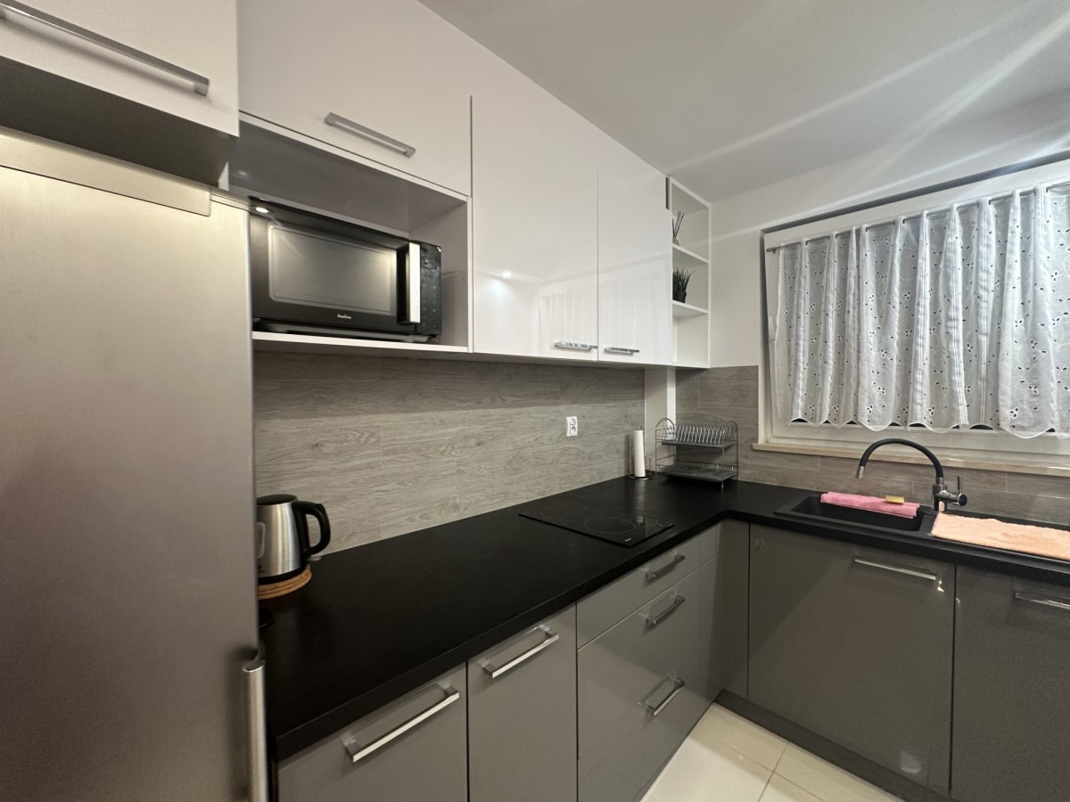 W skład mieszkania wchodzą 2 pokoje, widna kuchnia, przedpokój i łazienka z prysznicem. Mieszkanie umeblowane po remoncie, wykończone w dobrym standardzie.