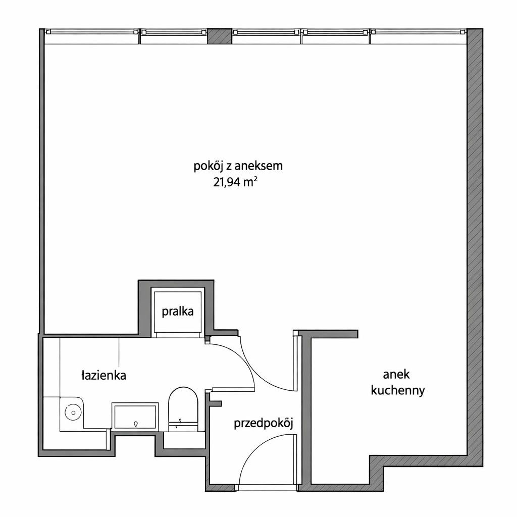 Wcześniej lokal posiadał wydzieloną małą sypialnię - istnieje możliwość łatwego przywrócenia tego układu poprzez postawienie ścianki działowej, co zwiększa potencjał aranżacyjny i inwestycyjny nieruchomości.