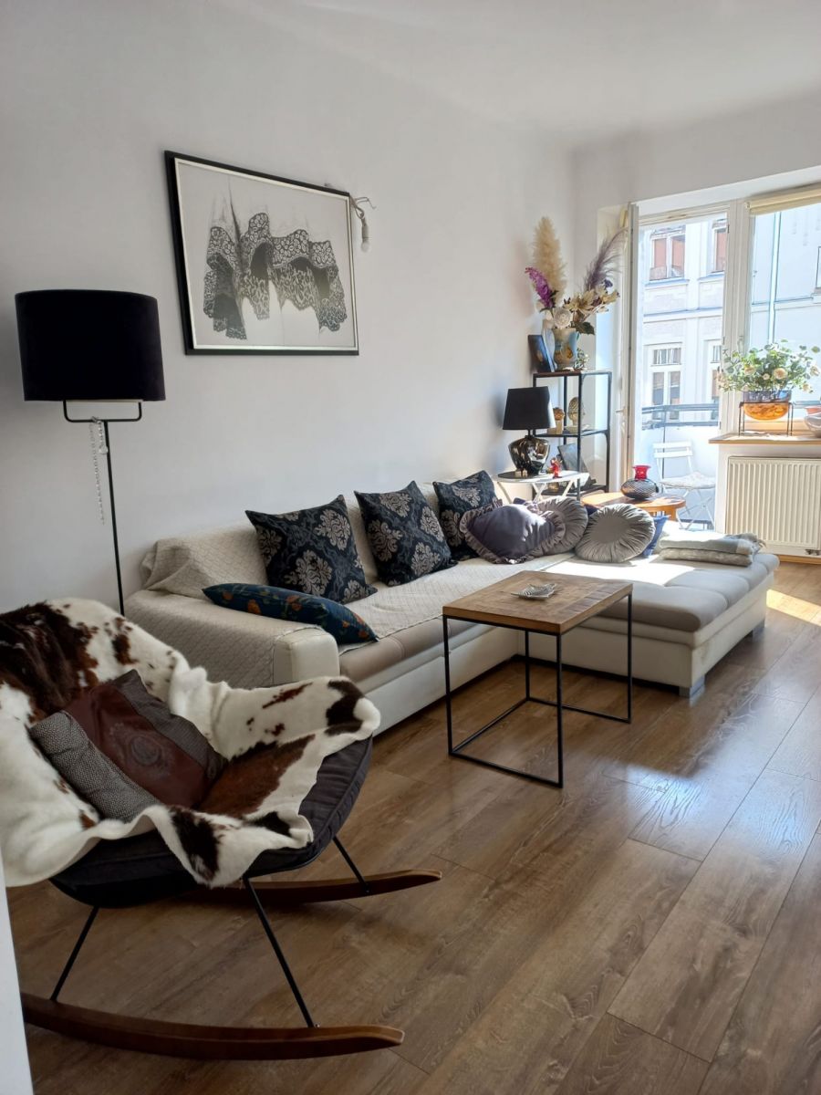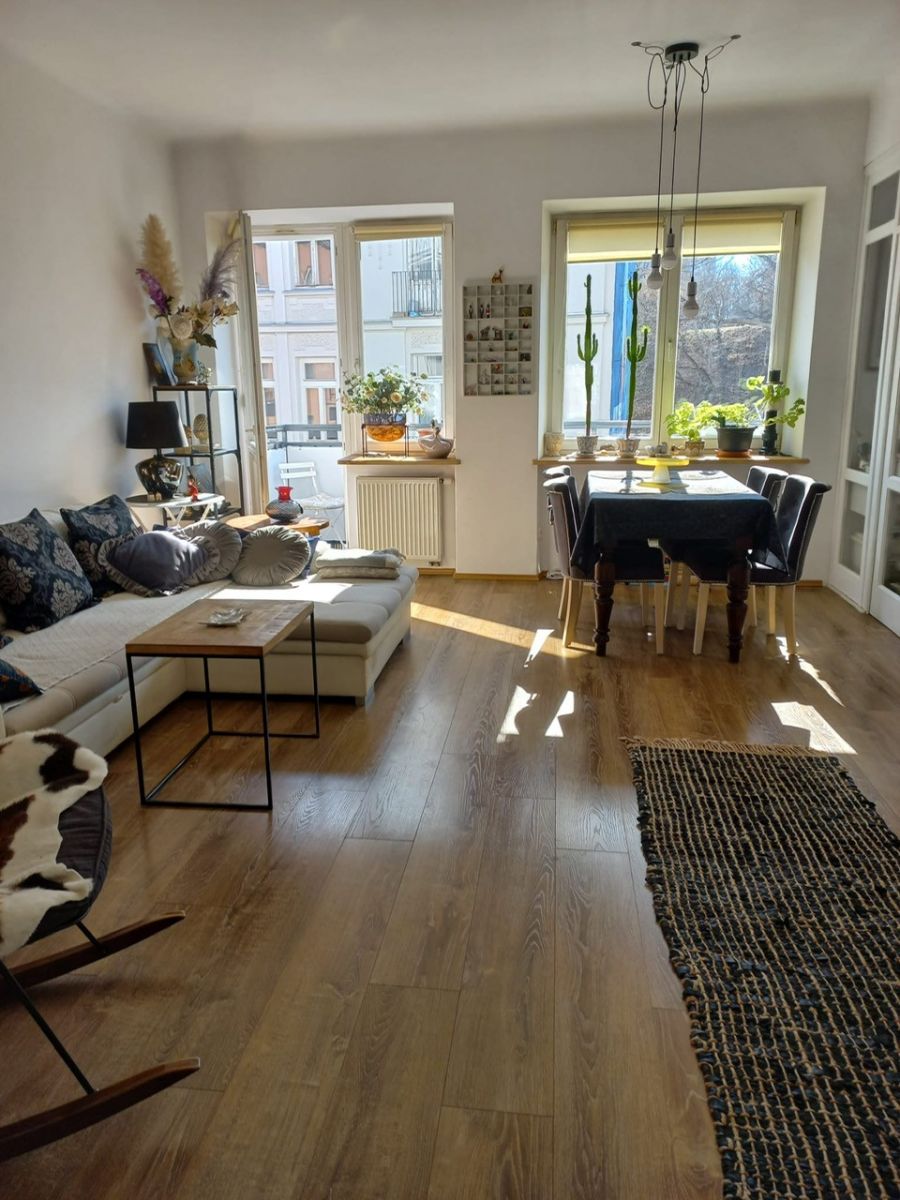 Mieszkanie jasne, przestronne wspaniale doświetlone wysokimi oknami. Znajduje się w niedawno kompleksowo odnowionym i bardzo zadbanym budynku, którego historia budowy sięga 1937 roku.