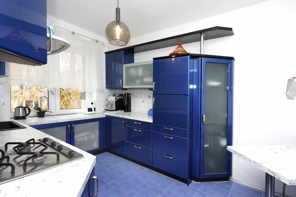 - Oddzielna kuchnia z oknem – funkcjonalna, jasna, w pełnej zabudowie.