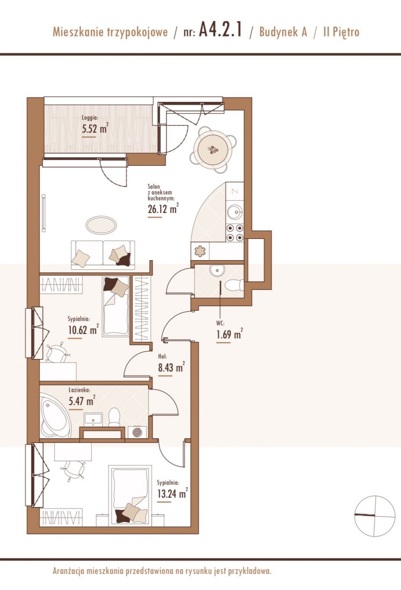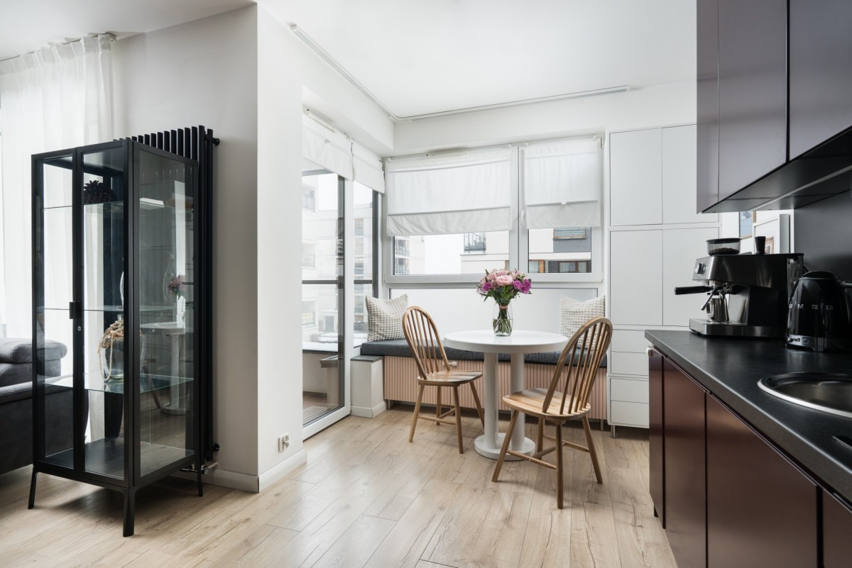 • salon z aneksem kuchennym i wyjściem na przestronną loggię