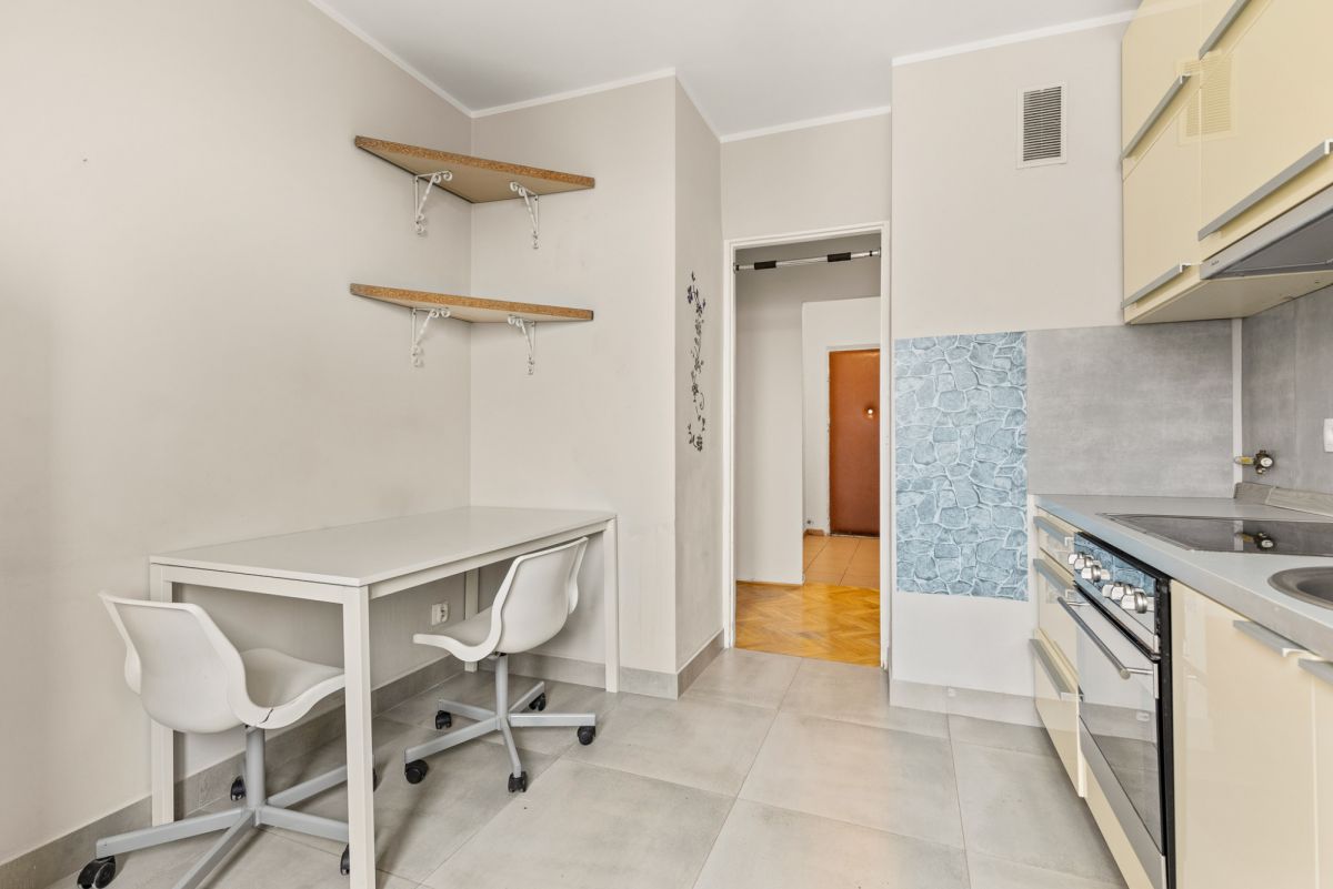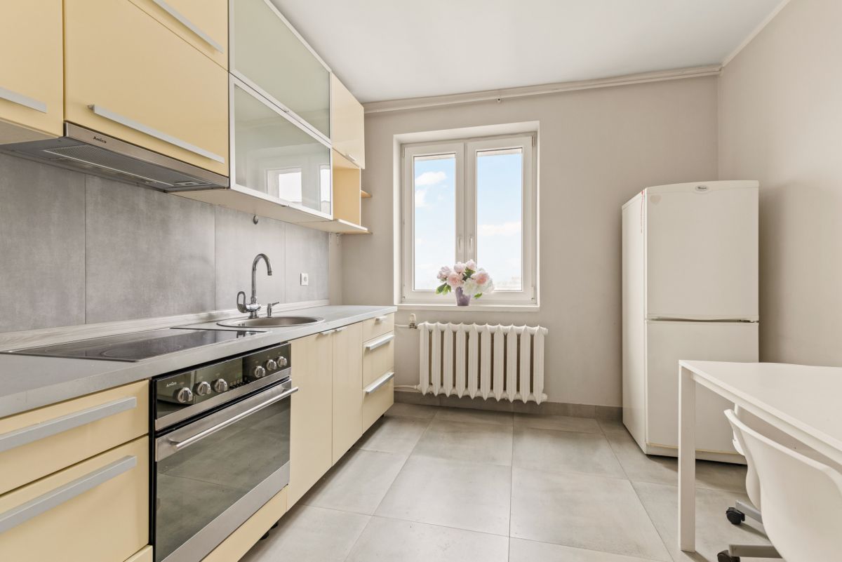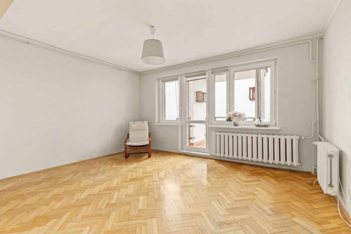 Słoneczne i rozkładowe mieszkanie znajduje się na 10 pietrze w stanie relatywnie dobrym ale do remontu. Na podłogach dobrze zachowany parkiet dębowy. Niewątpliwym atutem tej nieruchomości jest ekspozycja sypialni i kuchni na południowy wschód oraz salonu na południowy zachód. Siedmiometrowy taras, z obłędnym horyzontalnym widokiem na zachody słońca, to latem dodatkowy pokój!