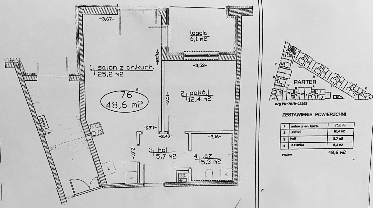 * Balkon typu loggia o powierzchni 6,1m², ze wschodnią ekspozycją.