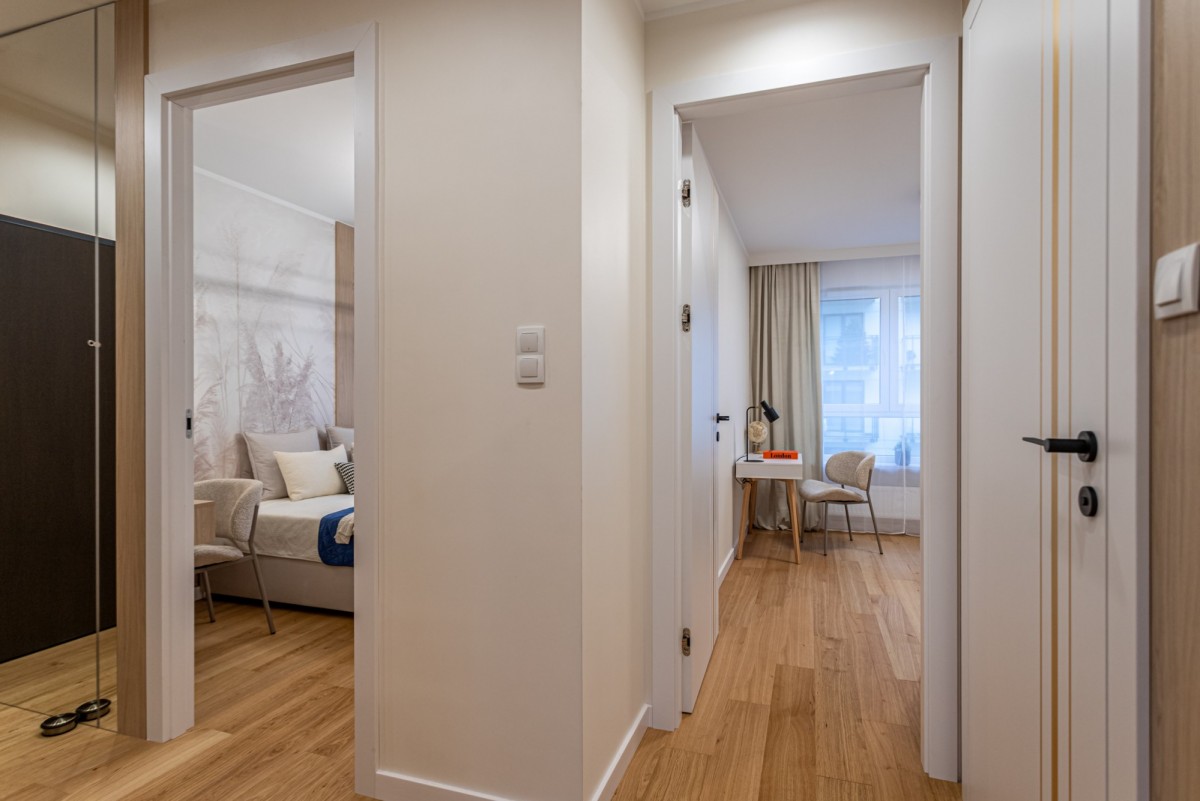Mieszkanie zostało zaprojektowane tak, aby wykorzystać każdy centymetr powierzchni. Wykończone w wysokim standardzie, z dbałością o detale.