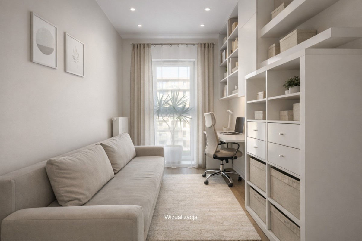 Mieszkanie ma przemyślany, funkcjonalny rozkład i oferuje możliwość komfortowej aranżacji według indywidualnych potrzeb.