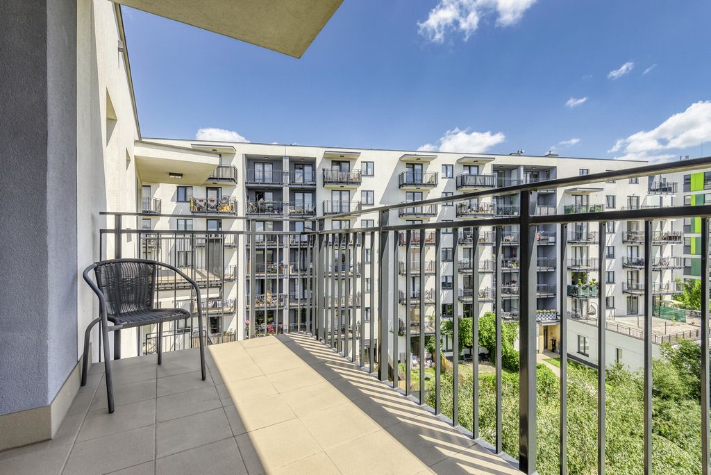 • część dzienna z wyjściem na duży balkon – przestrzeń do relaksu i pracy,