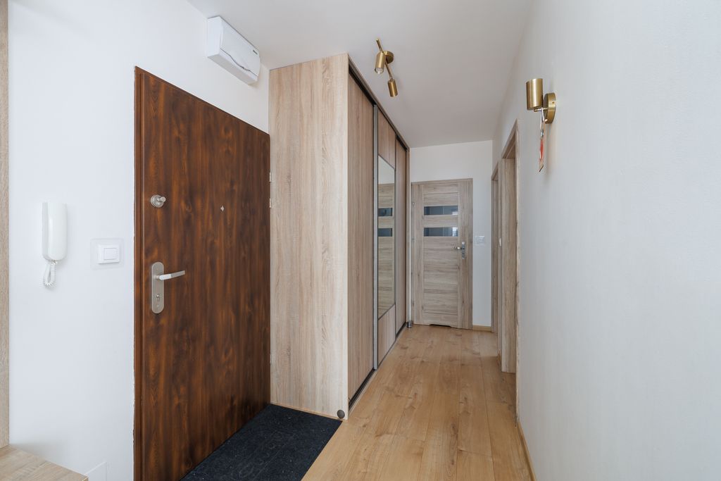 - Przedpokój — z możliwością wygodnej zabudowy na dodatkowe miejsce do przechowywania.