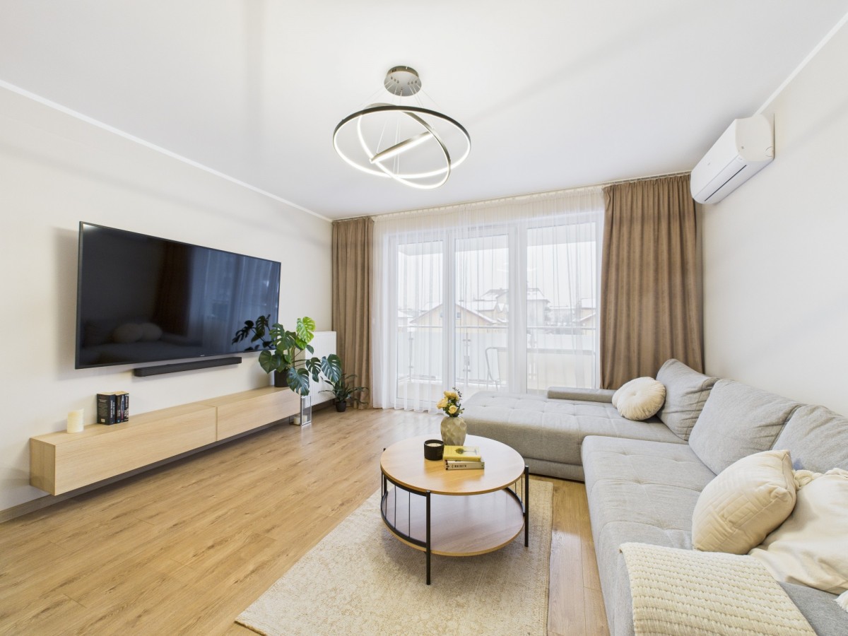 Prezentujemy przestronne, jasne mieszkanie, w pełni umeblowane które będzie idealne jako mieszkanie dla pary lub rodziny 2+1. Mieszkanie posiada otwarty salon, dwie, duże sypialnie, dużą, jasną, otwartą kuchnię oraz łazienkę z wanną. Dodatkowo każde z pokoi są pomieszczeniami nieprzechodnimi. Mieszkanie wykończone jest w wysokim standardzie, a całe wyposażenie jest w cenie nieruchomości- możesz od razu się wprowadzić. Do mieszkania przynależy również duży taras, komórka lokatorska na piętrze oraz dwa miejsca w garażu.