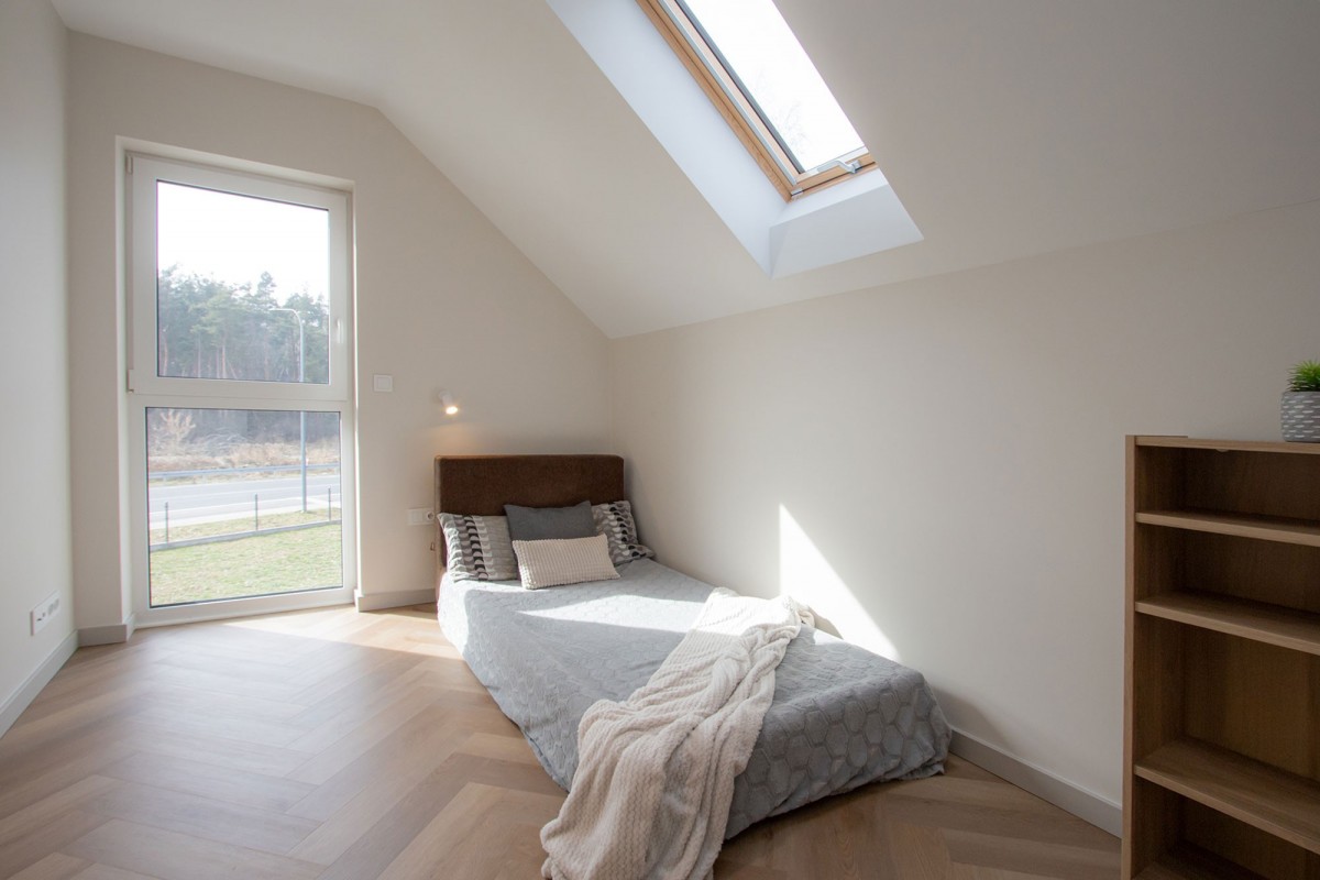 Domek znajduje się na nowym kameralnym osiedlu sąsiadującym zaledwie przez drogę z urokliwym lasem i stawem. Widok z okien na staw i las! Domek to całkowicie samodzielny, świeżo wykończony w wysokim standardzie, dwupoziomowy lokal o pow 66 m kw. położony na ogrodzonej działce o powierzchni blisko 400 m, na którą składa się podjazd, obszerny taras i ogród.