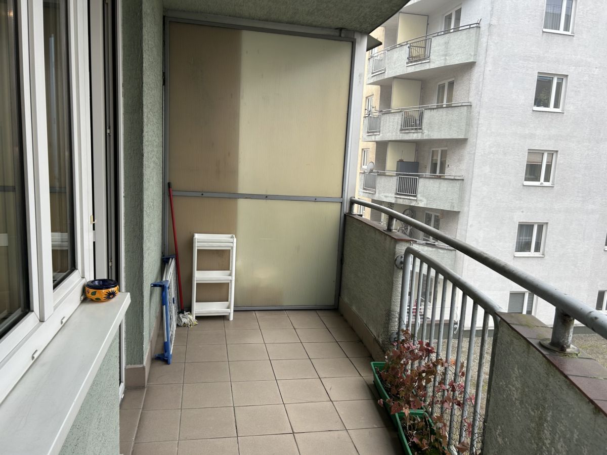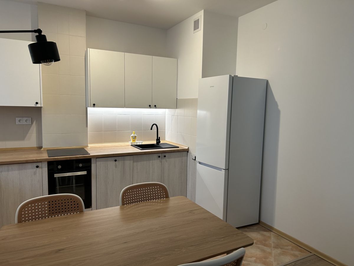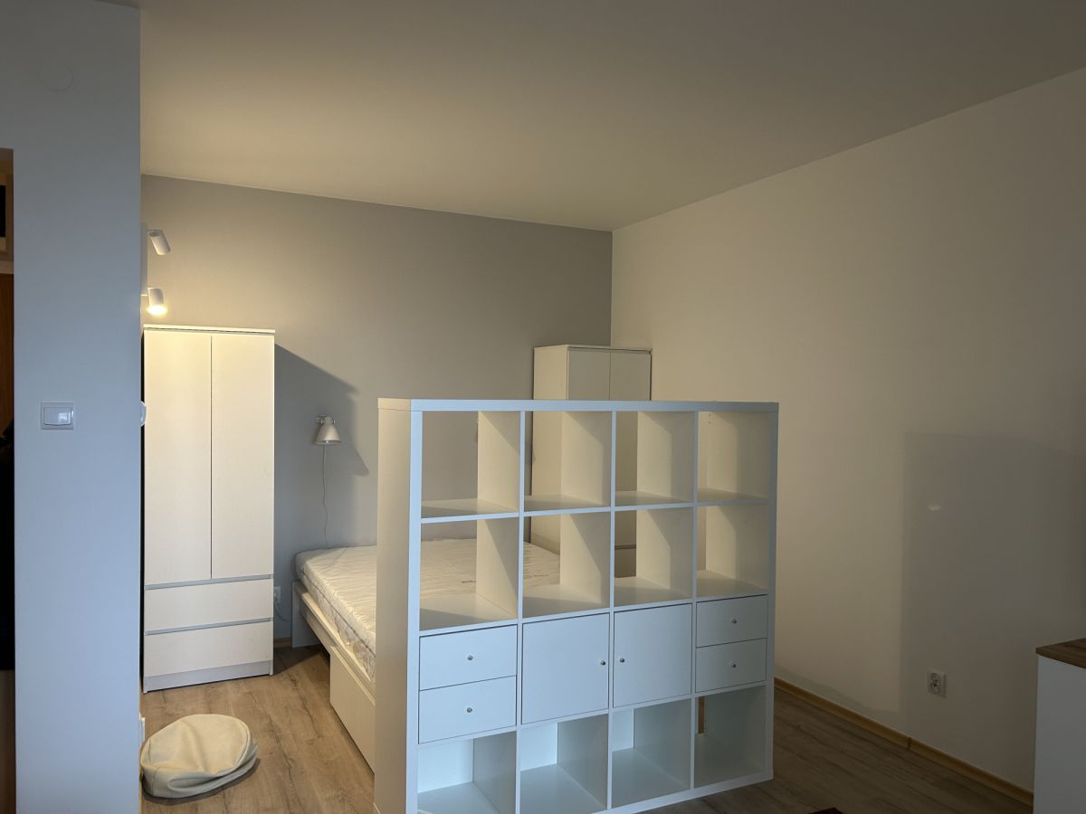 Mieszkanie po remoncie, składa się z pokoju z wyjściem na duży balkon, oraz wnęki sypialnianej z sypialnianym łóżkiem.