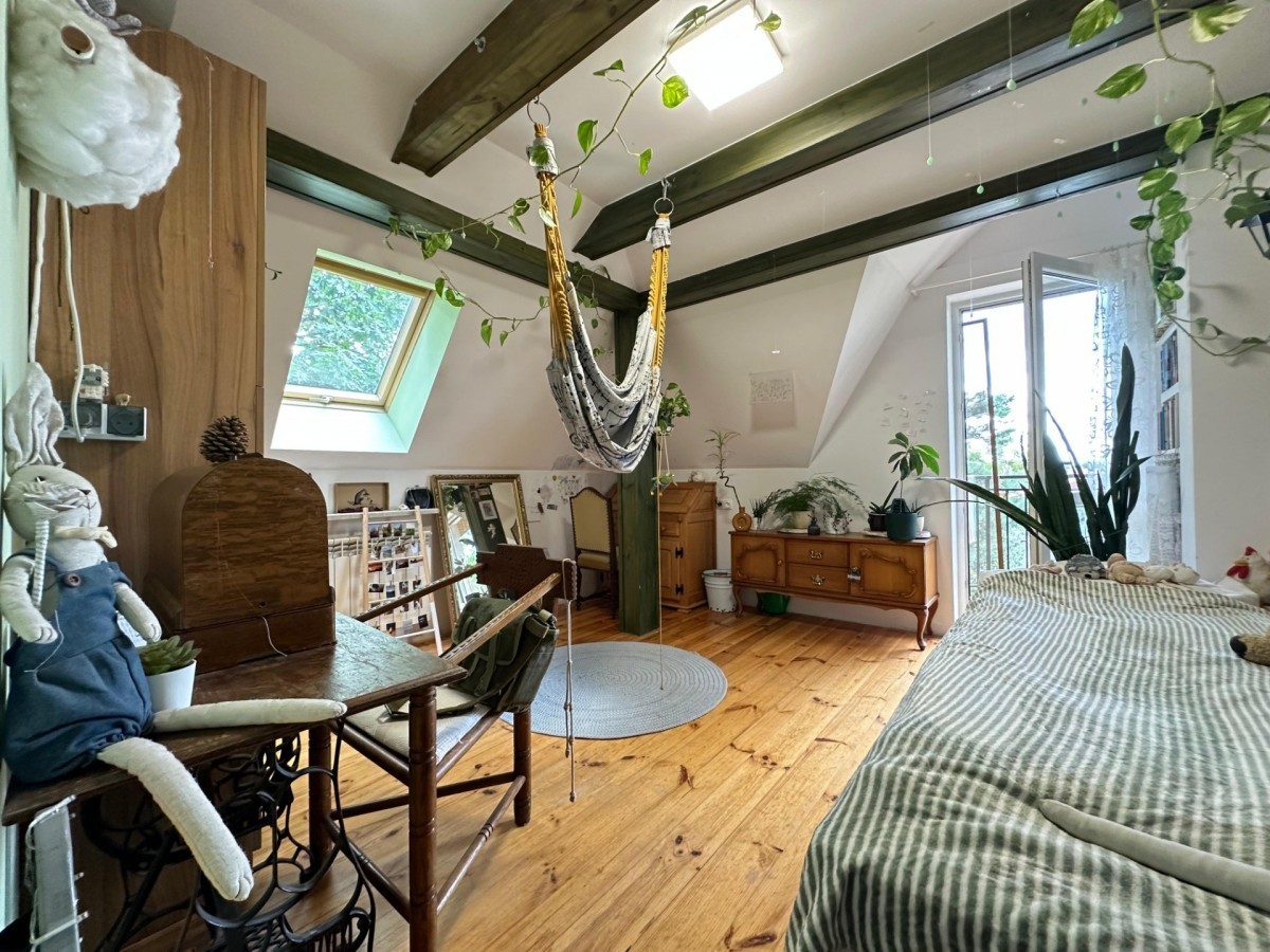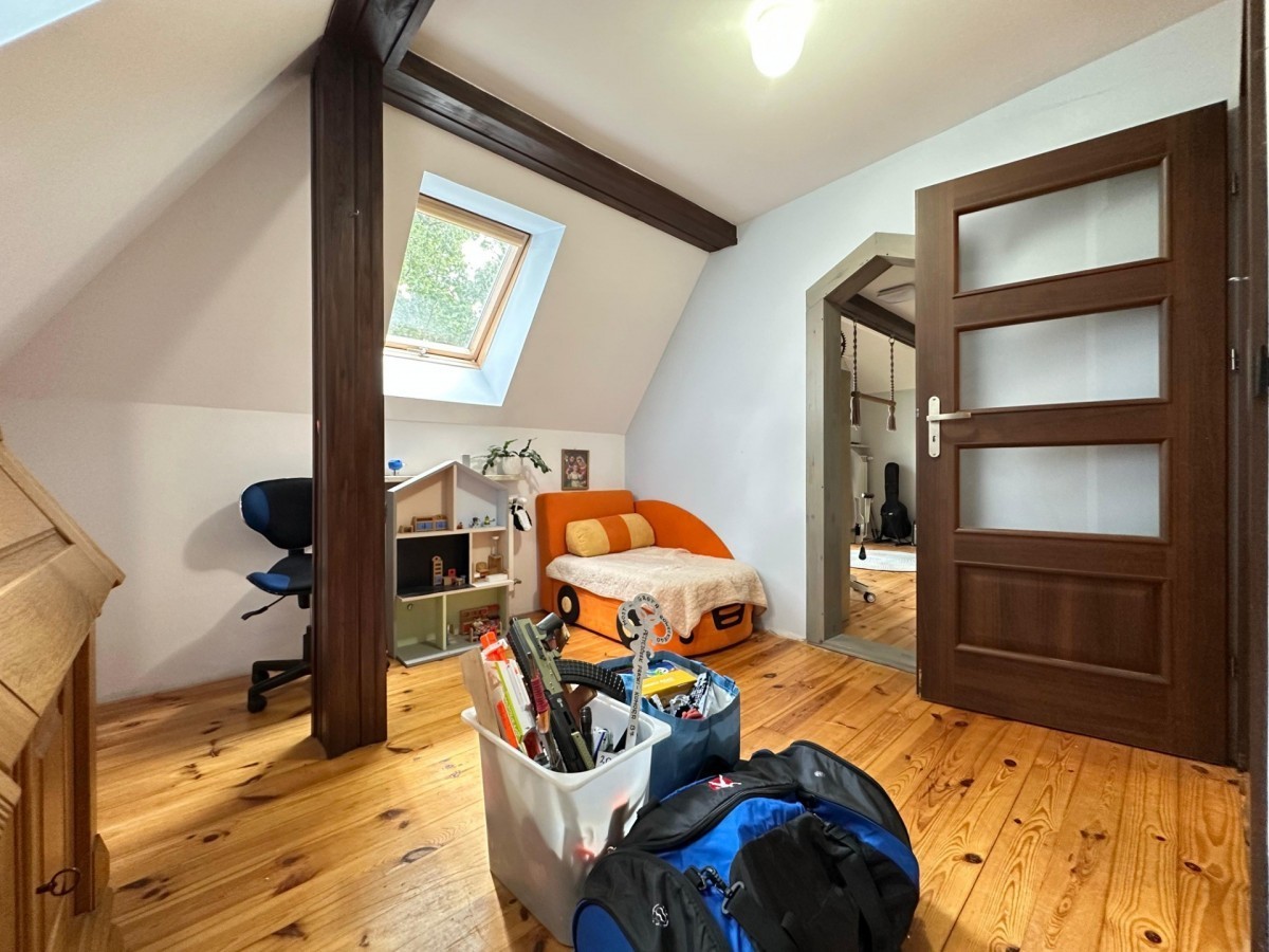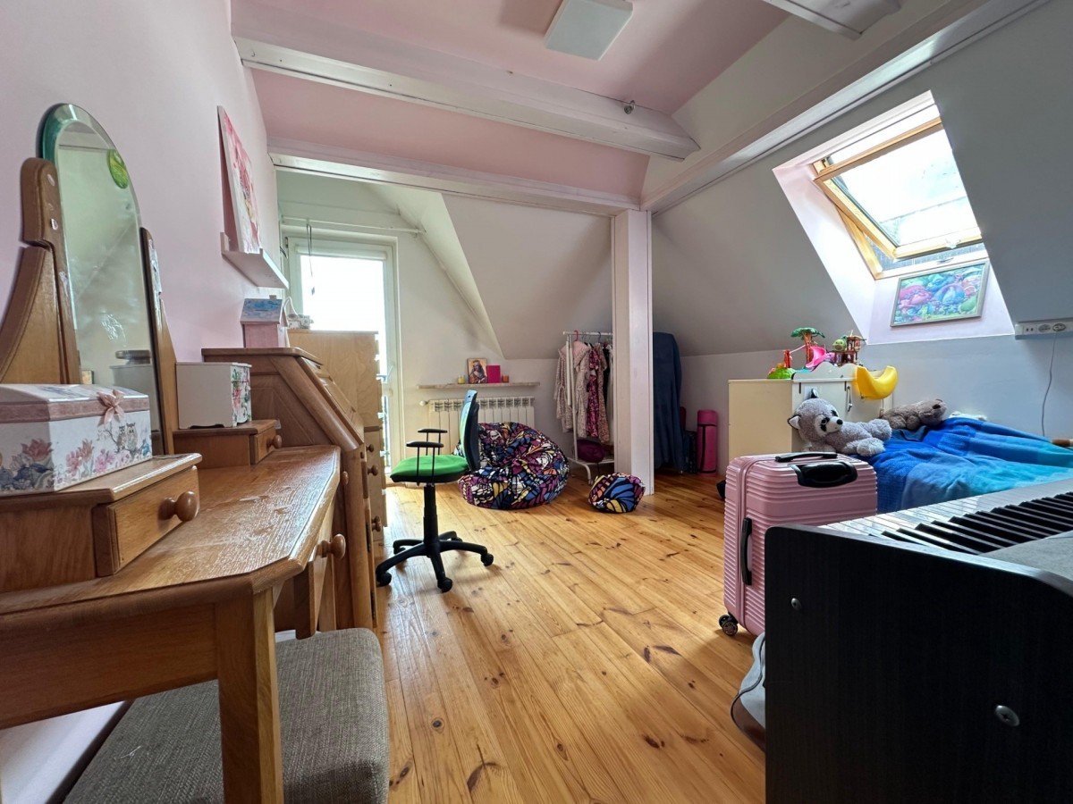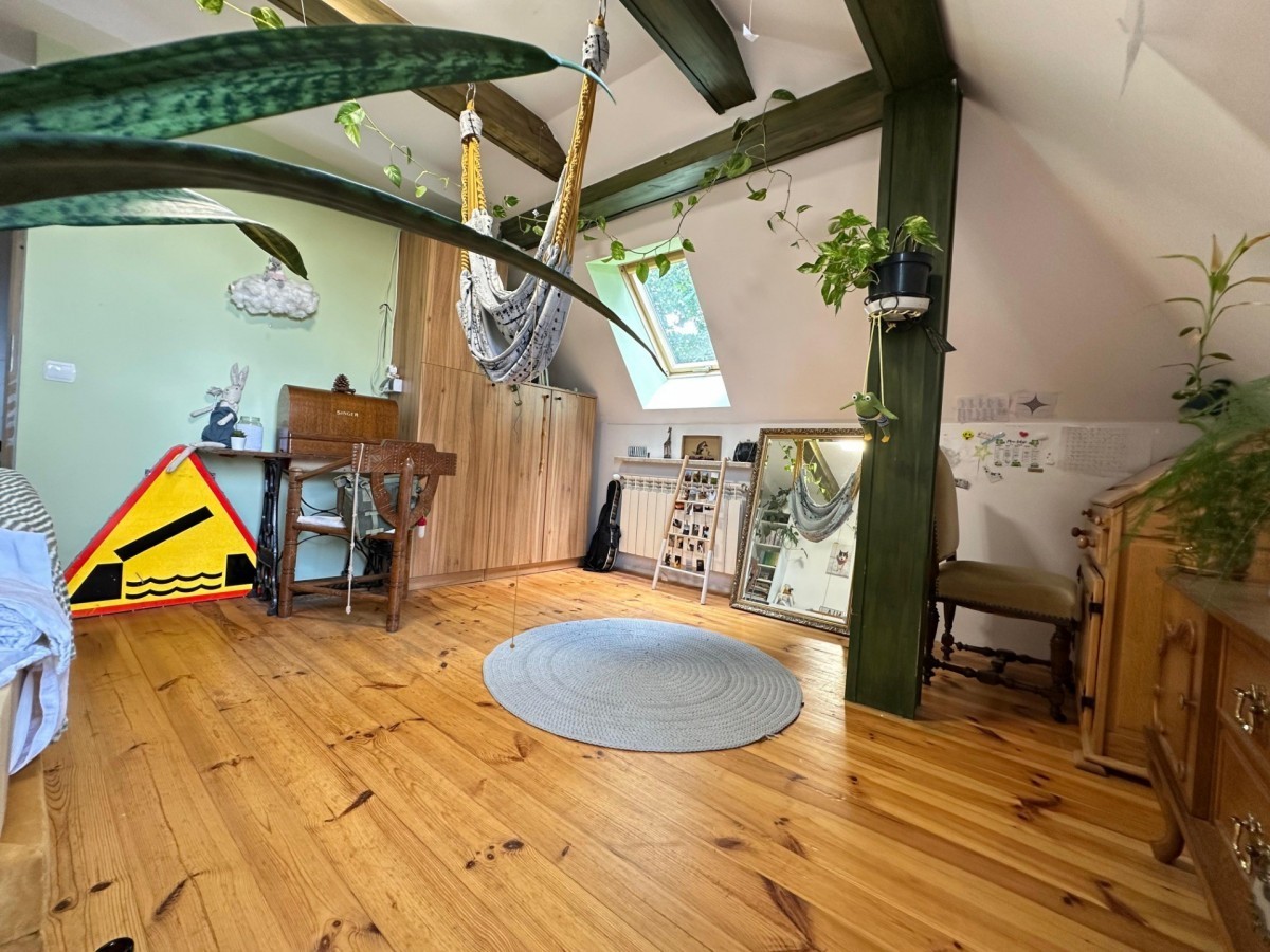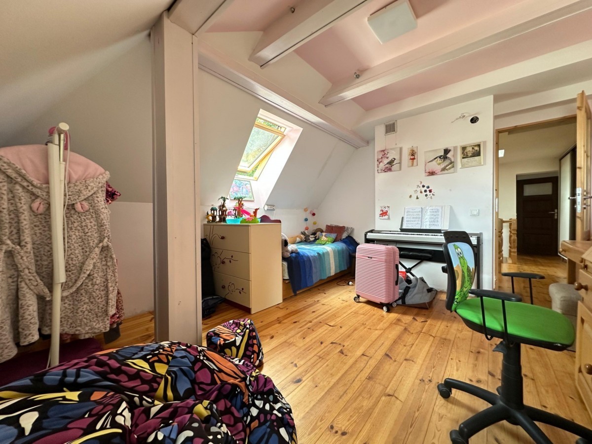 Poddasze (wysokość sufitu: 2,3 m): Cztery pokoje, duża łazienka, garderoba w postaci zabudowy w przestrzeni korytarza.
