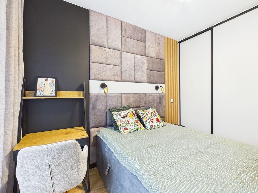 - funkcjonalny układ: przestronny pokój dzienny z aneksem kuchennym, wydzielona szybą sypialnia, łazienka oraz przedpokój