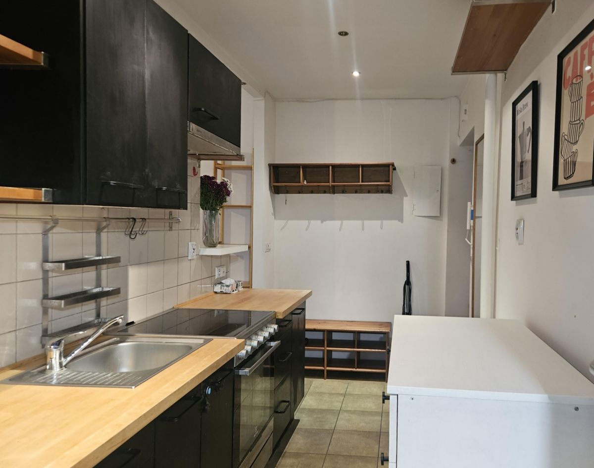 To niespełna 36-metrowe mieszkanie znajduje się na pierwszym piętrze i doskonale sprawdzi się dla jednej osoby, pary lub osób pracujących zdalnie.