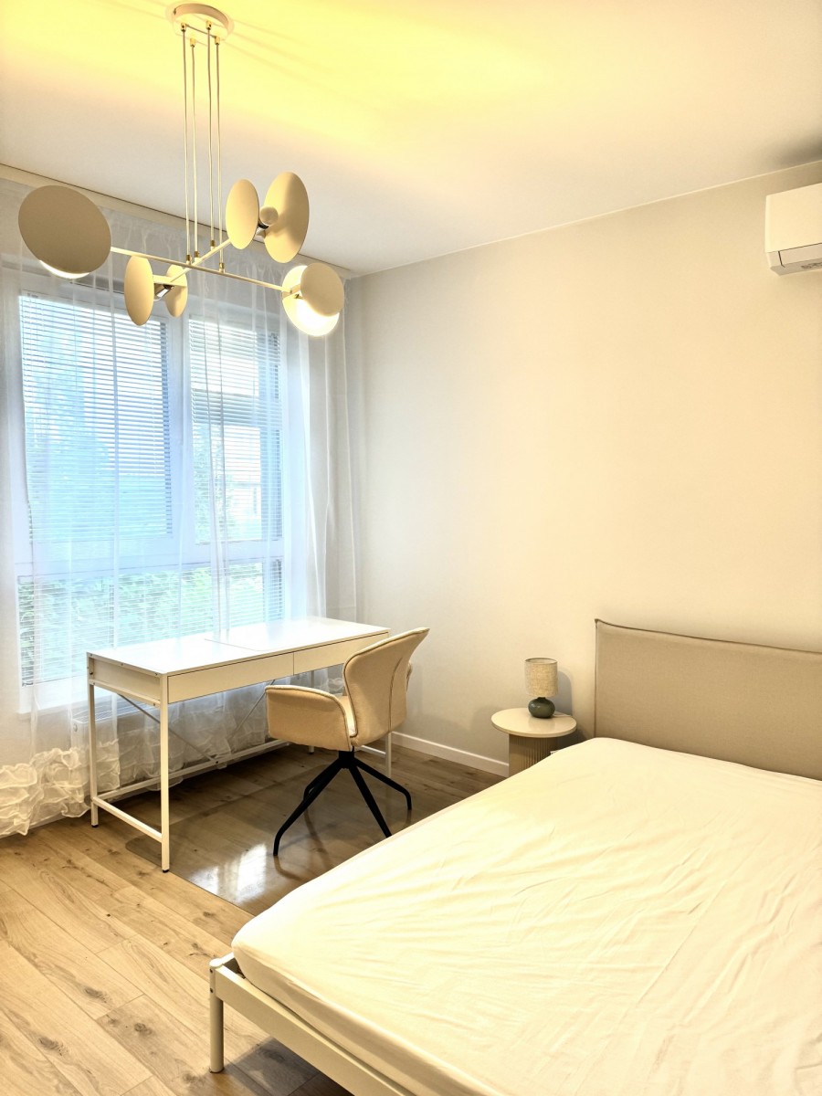 Mieszkanie jest całkowicie nowe. Wspólna przestrzeń obejmuje w pełni wyposażoną kuchnię z mikrofalówką, a także łazienkę z pralko-szauszarką aby zapewnić maksymalną wygodę. Mieszkanie znajduje się za parterze i jeden z pokojów będzie miał dostęp do dużego ogródka.