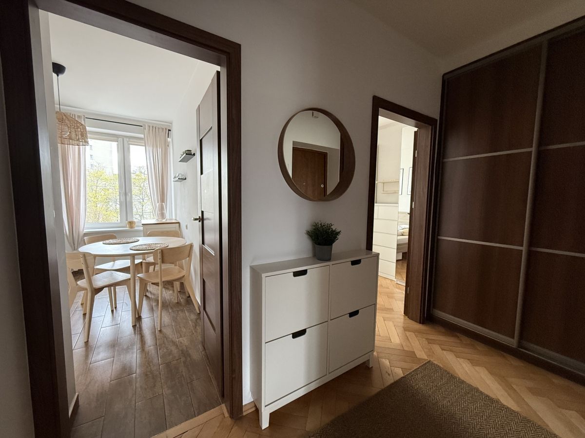 Mieszkanie idealne dla osób szukających komfortowego lokum w spokojnej, a jednocześnie świetnie skomunikowanej części Warszawy. Właściciel akceptuje psy.