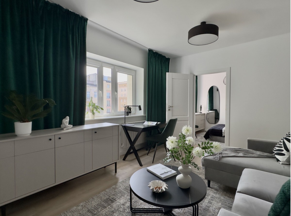Mieszkanie przeszło generalny remont. Wyposażone w wysokiej jakości sprzęt. Wszystkie elementy umeblowania są nowe. Świetny rozkład. 1. wynajem. Usytuowane na 4. piętrze, w kamienicy bez windy.