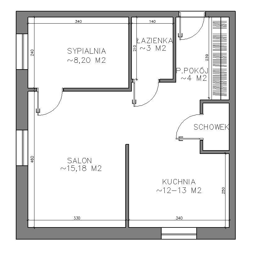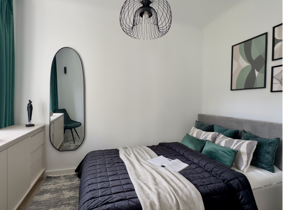 - przedpokoju z dużą, pojemną szafą wnękową z lustrem,