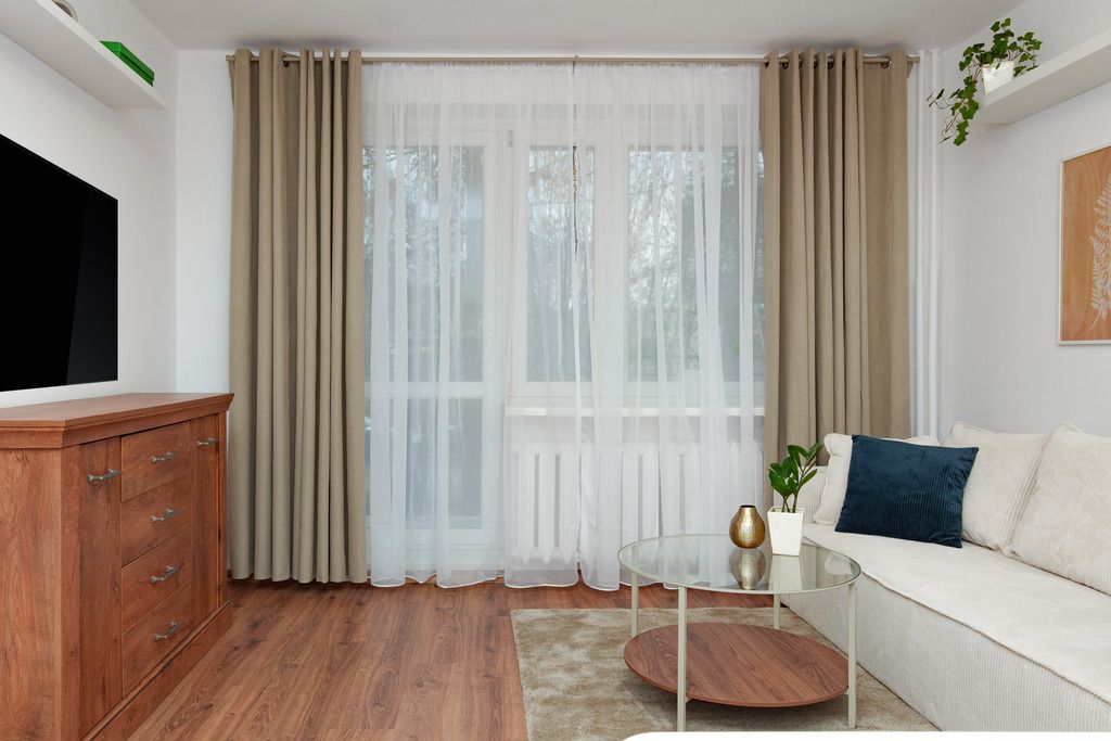 – Zadbane mieszkanie z nowymi meblami w salonie i sypialni, gotowe do wprowadzenia.
